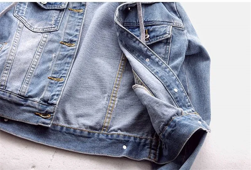 Женская джинсовая куртка, короткая джинсовая куртка с капюшоном для...