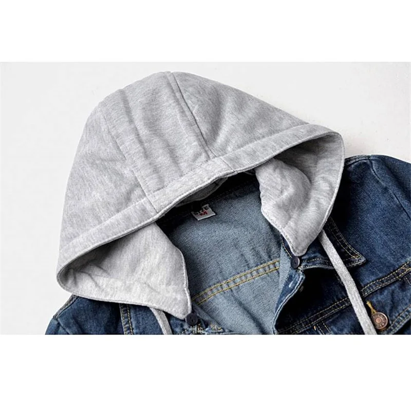 Женская джинсовая куртка, винтажная куртка с капюшоном, с пуговицам...