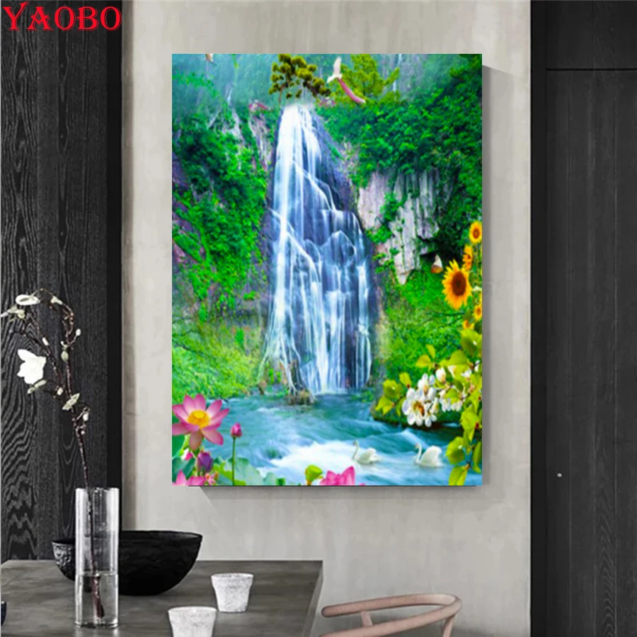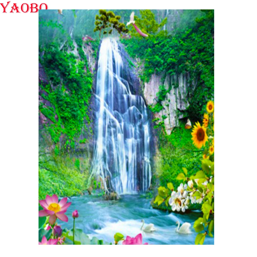 Горный водопад зеленые деревья DIY 5D алмазная картина полный квадратный круглый дрель мозаика вышивка цветы лотоса рукоделие Декор