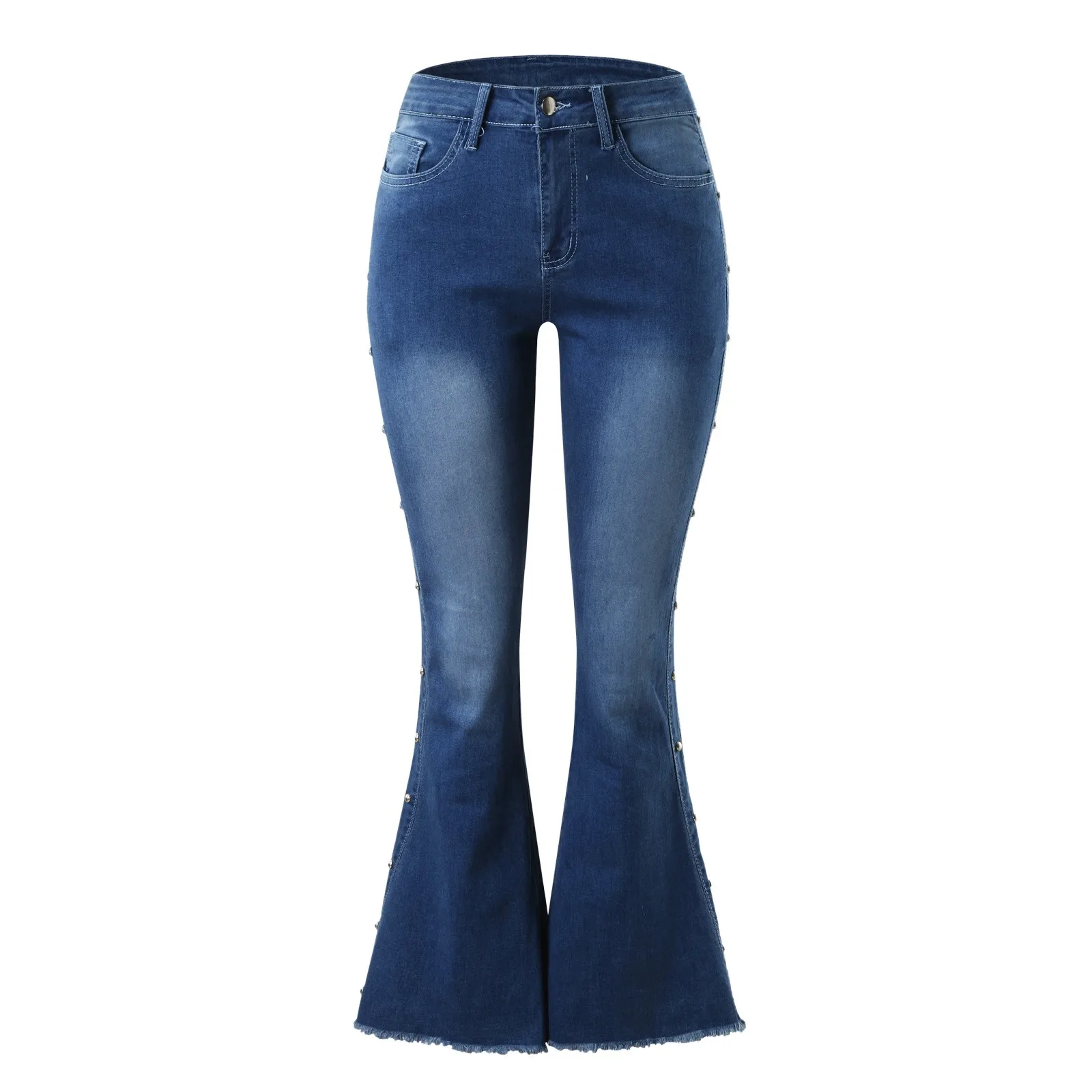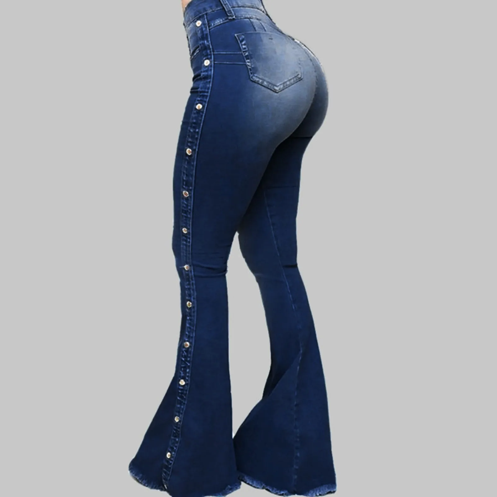 Женские джинсы, однотонные джинсы с металлическими пуговицами, градиентные потертые брюки