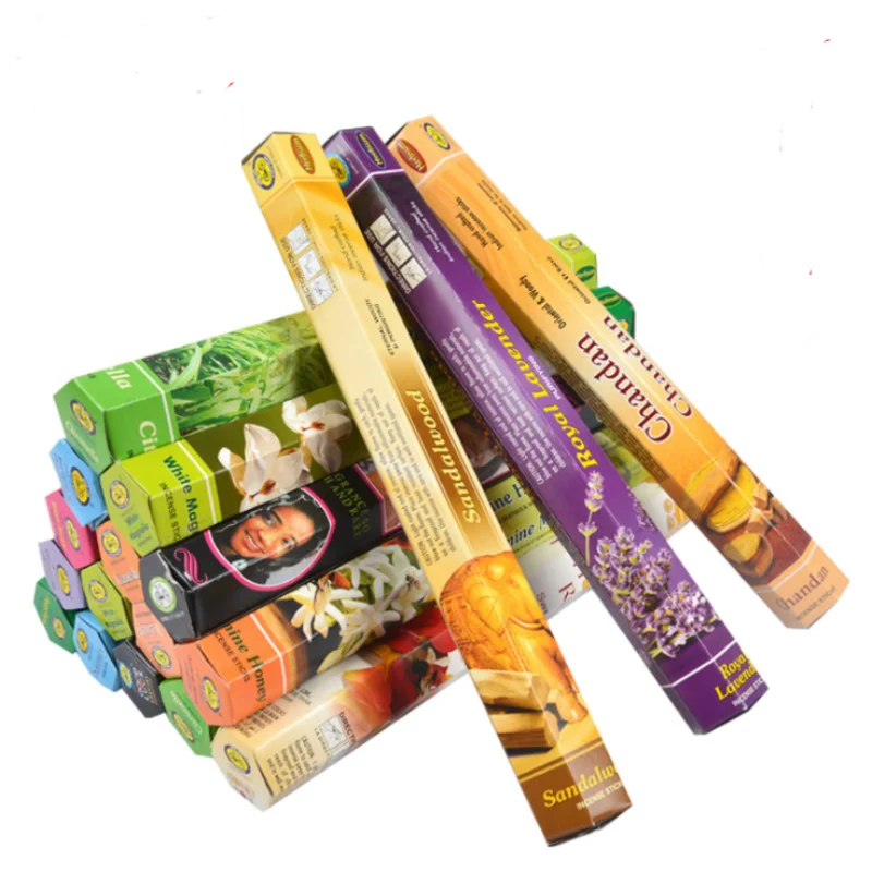 Хранение: Поместите прохладное, темное, сухое место, аромат будет более чистым вместе с временем горенияВремя: около 30 минутИндийские благовонияРазмер коробки: 25 см x 10 см x 6 смУпаковочный лист: 108 шт./кор.Примечания: вам нужно только купить 2 коробки или больше, и мы предоставим вам базу благовоний.Ароматы: Орхидея, агилавуд, роза, черная красота, жимолость, жасмин, тишина, виноград, сандаловое дерево, ангел, цитронеллаОсобенности:Жасминовый вкус, антидепрессант, получите удовольствие, расслабьте свой ум Роза: антидепрессант, афродизиак, помогите циркуляции крови зеленого чая: Помогите успокоить и расслабить агарвуд: стабильное настроение
