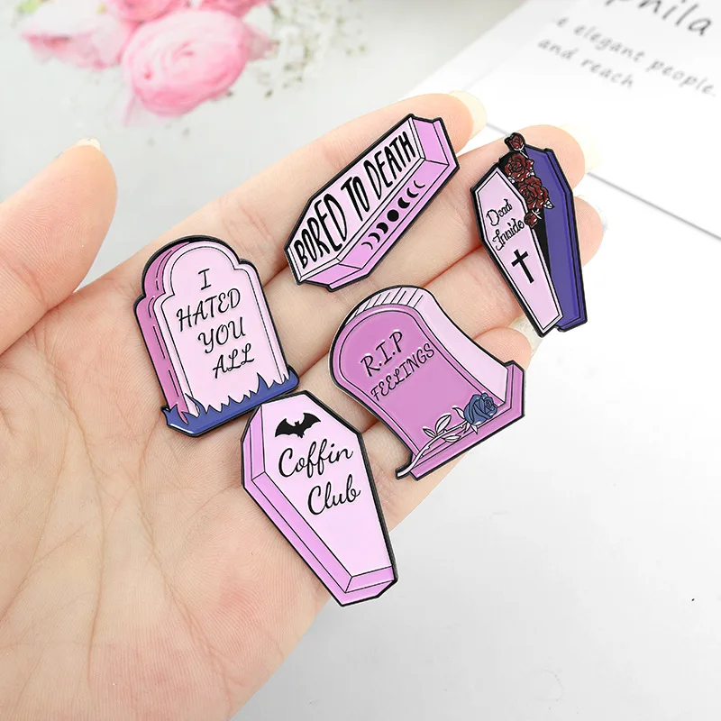 Эмалевые булавки Dead Inside на заказ, фиолетовая брошь в виде надг...