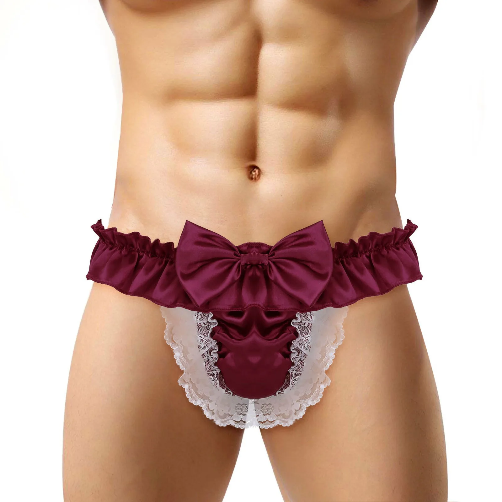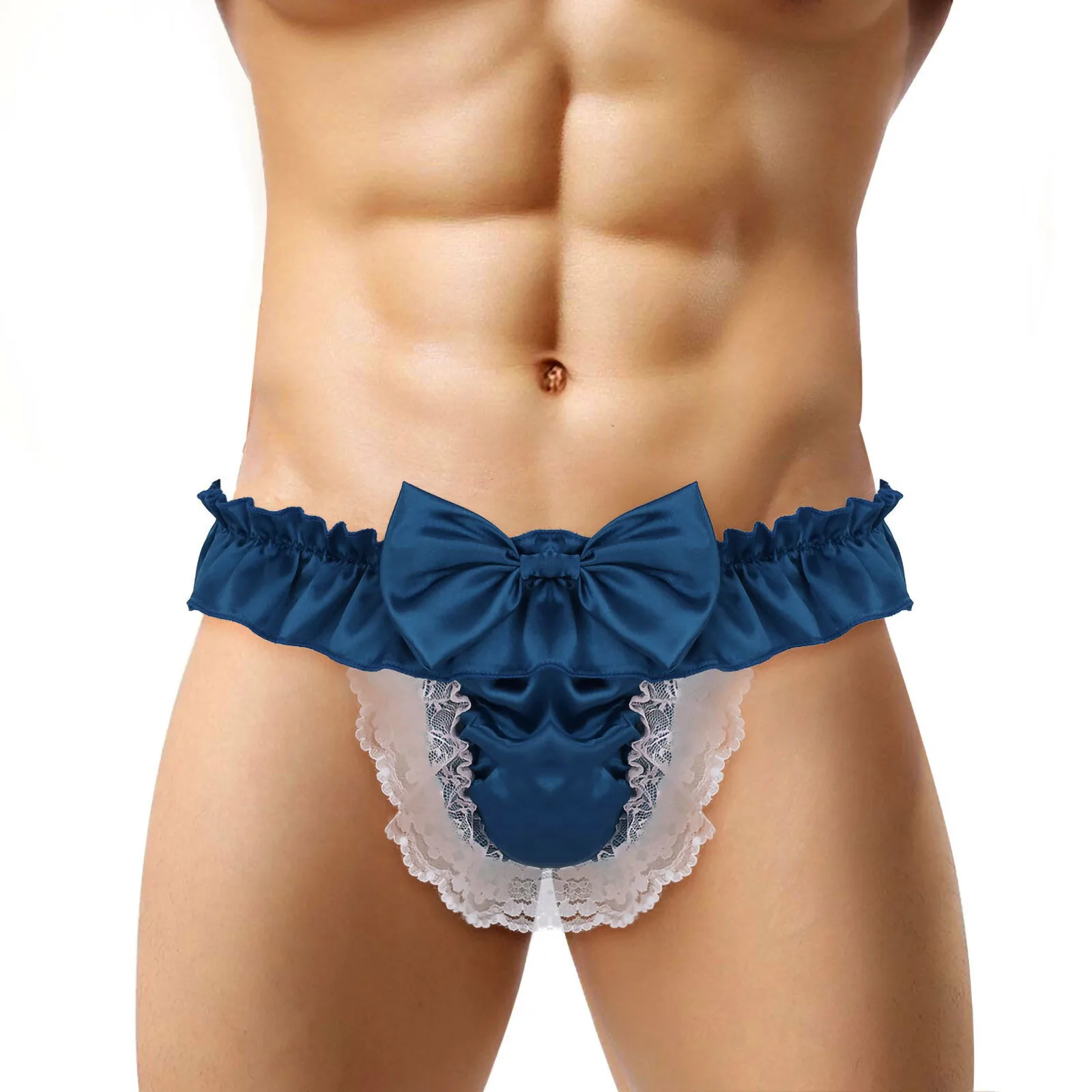 Трусы-стринги мужские, кружевные, с бантом, с низкой посадкой