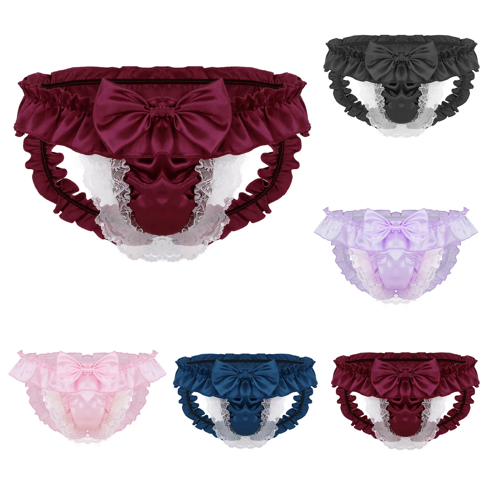 Женские атласные трусики с оборками и рюшами, трусы, нижнее белье, ...