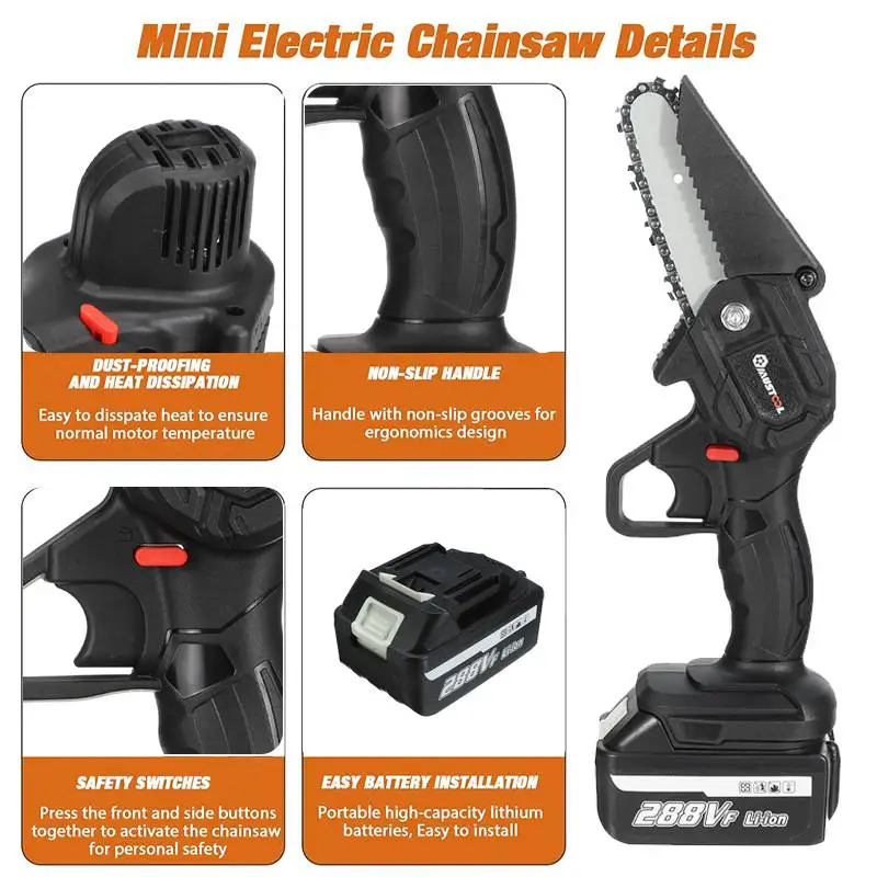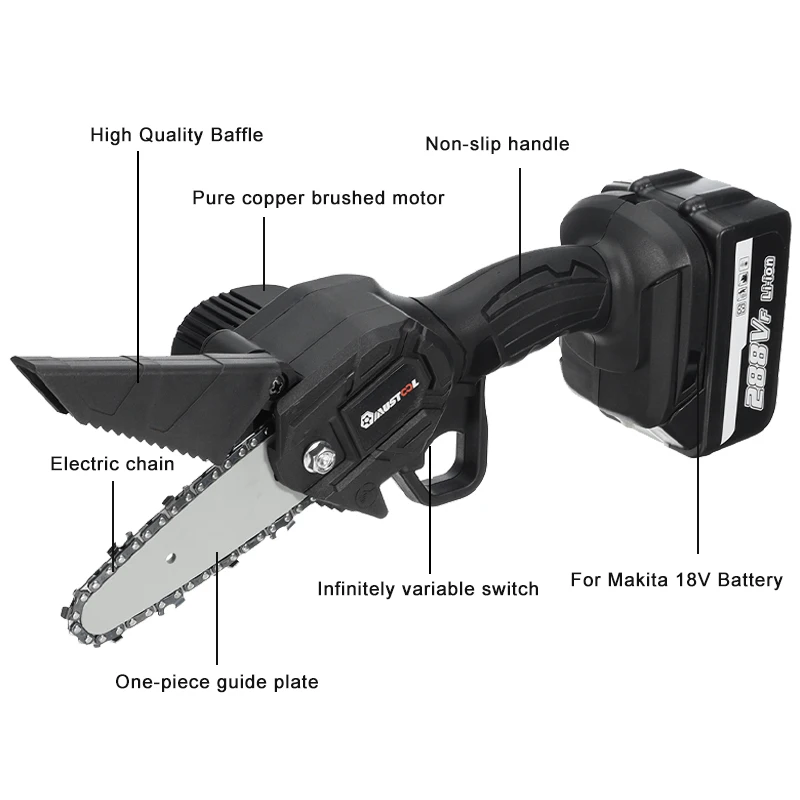 288Vf 1200W 4 дюймовый мини Электрическая цепная пила Перезаряжаемые деревообрабатывающий Purning садовые инструменты для заготовки леса дерева резак для Makita Батарея