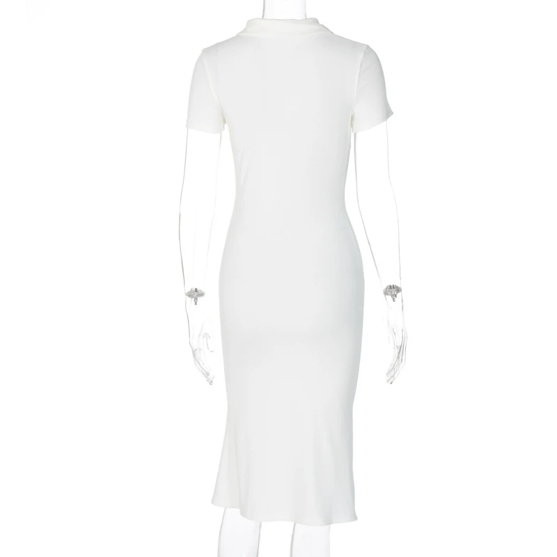 WJFZQM Сексуальное Платье макси с коротким рукавом на пуговицах с о...