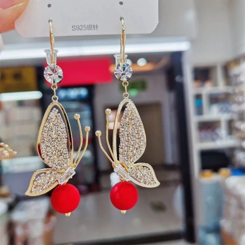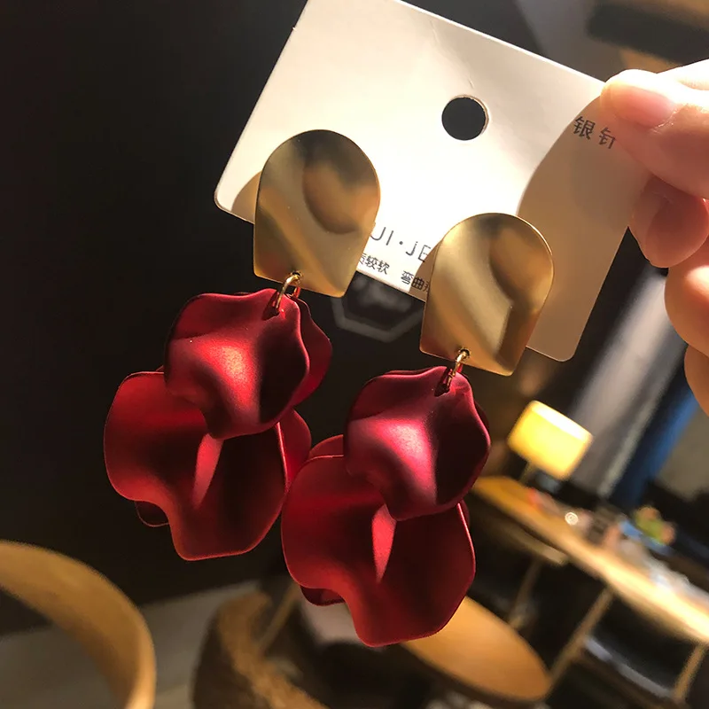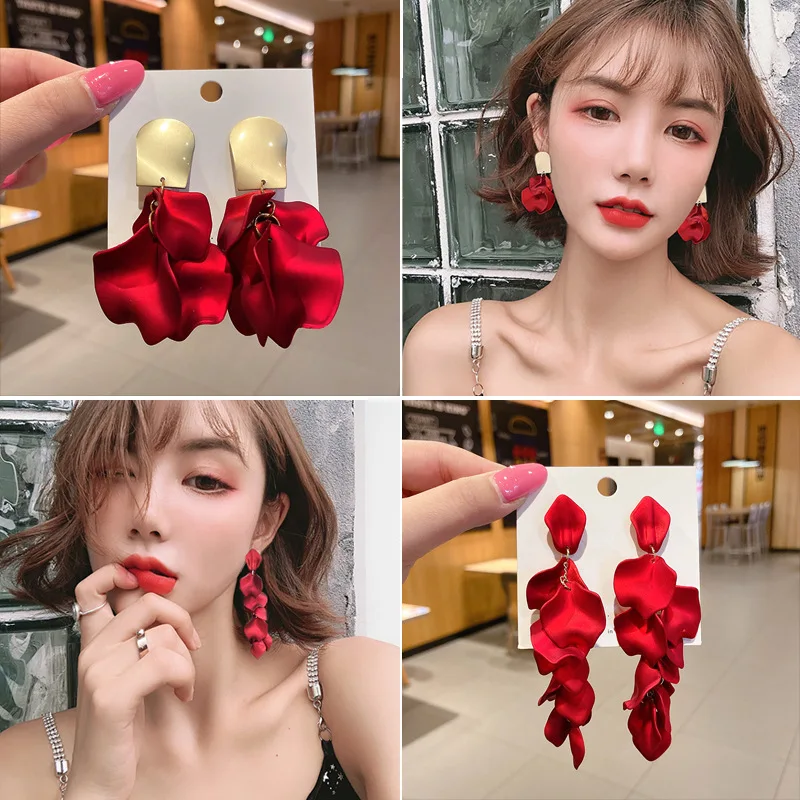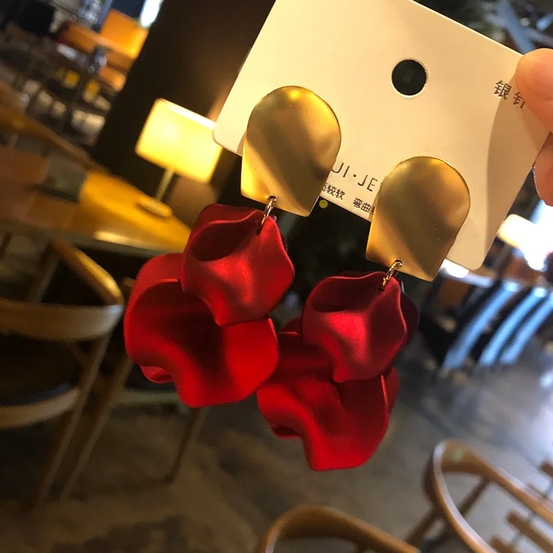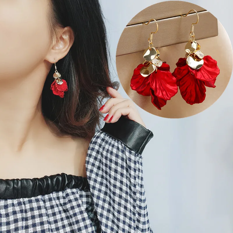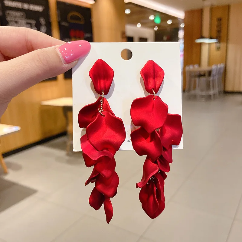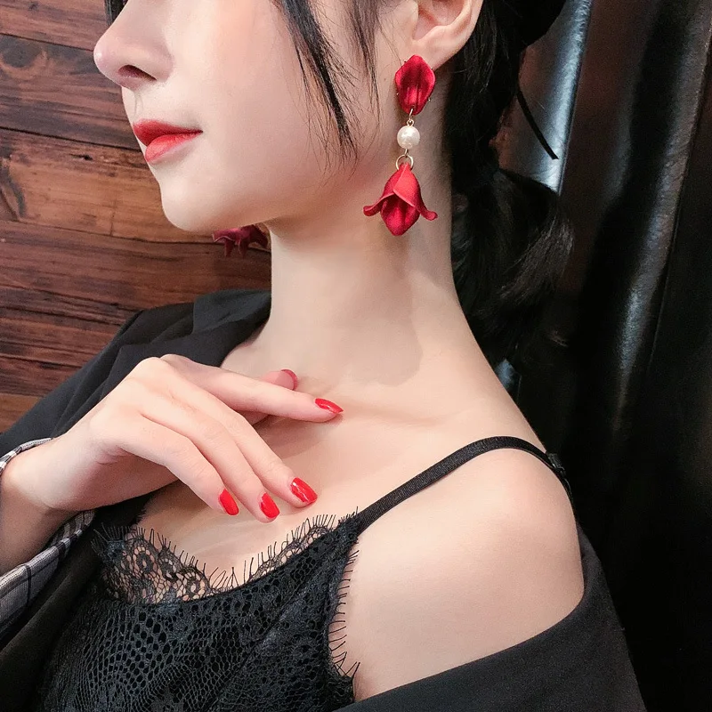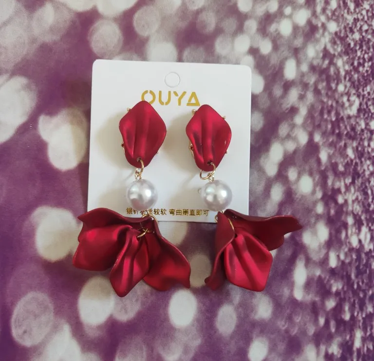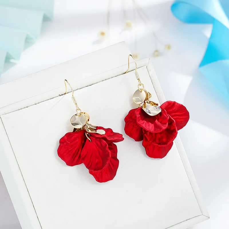 Серьги-подвески женские, с цветком, красные, белые, длинные