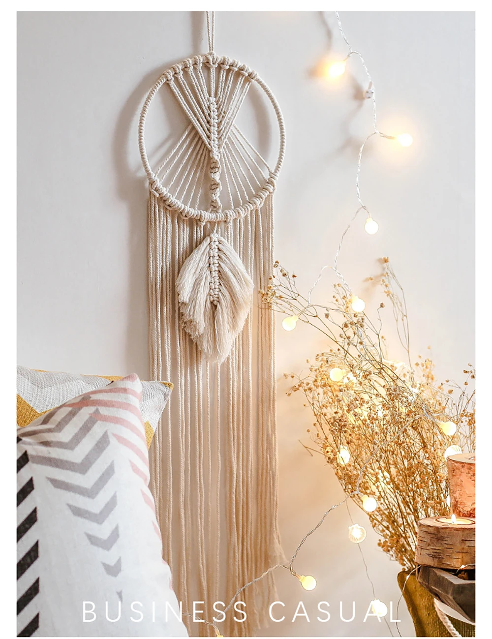 Богемный Плетеный вручную хлопковый шнур Ловец снов гобелен украшен...