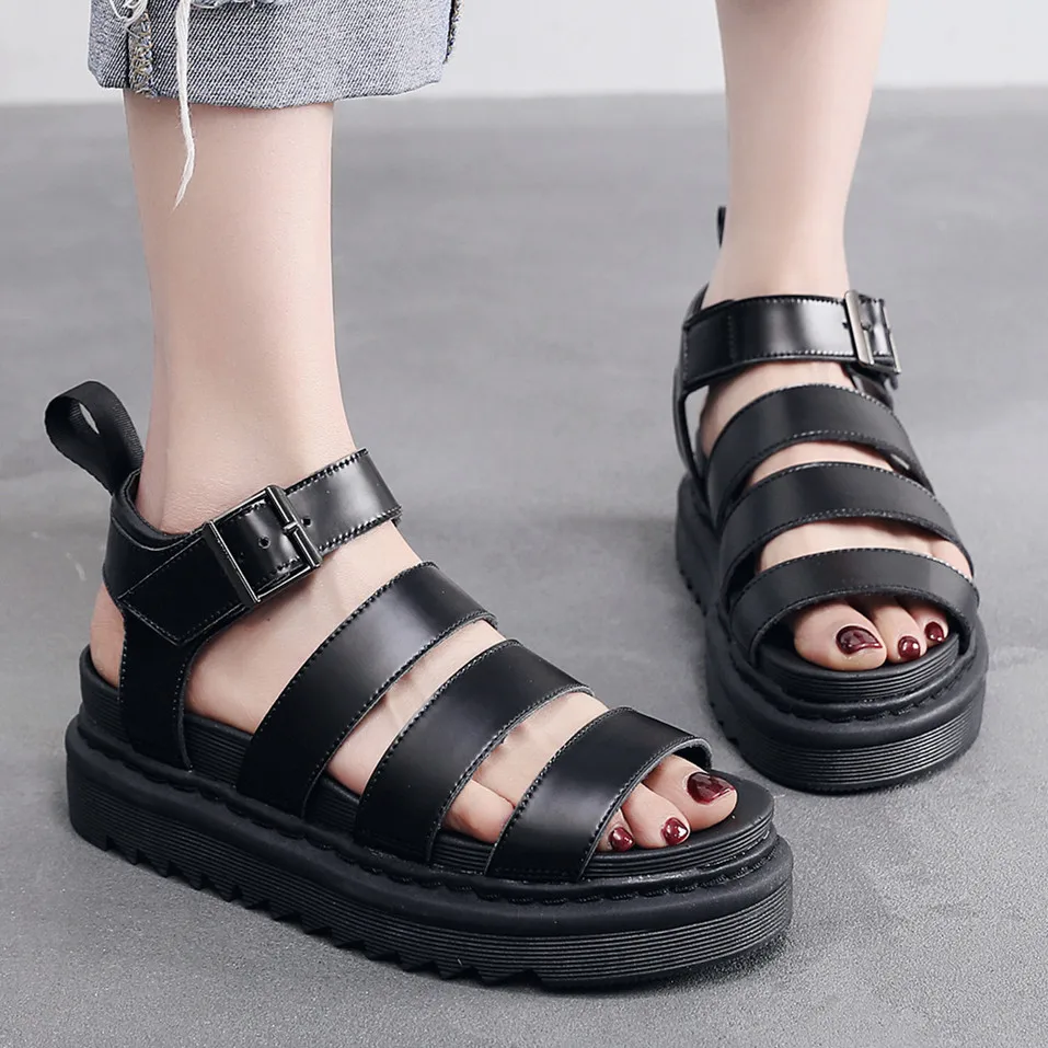Женские летние туфли YISHEN 2022, женские сандалии на плоской платформе, женские мягкие кожаные повседневные туфли с открытым носком на толстой танкетке, женская обувь