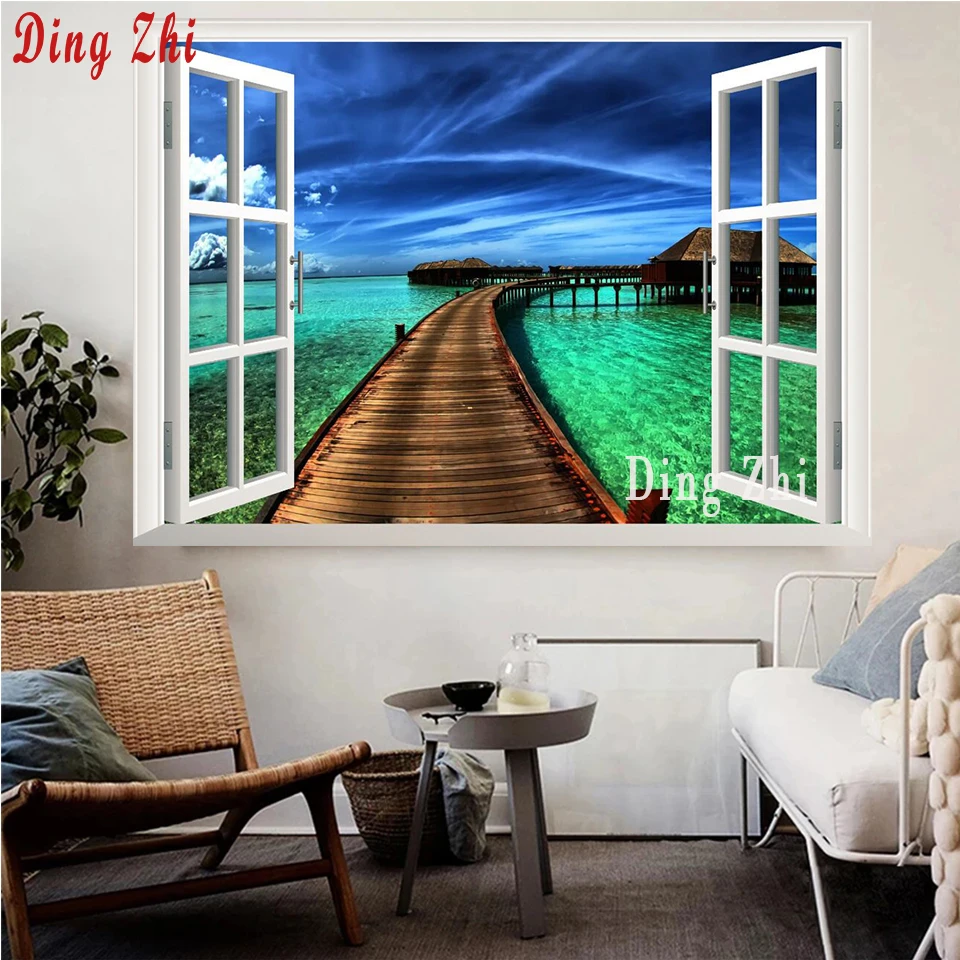 Картина из алмазов на окно, пейзаж, 5D, вид на море, курорт, набережная, картина «сделай сам», Алмазная мозаика, вышивка крестиком, Набор для вышивки ручной работы