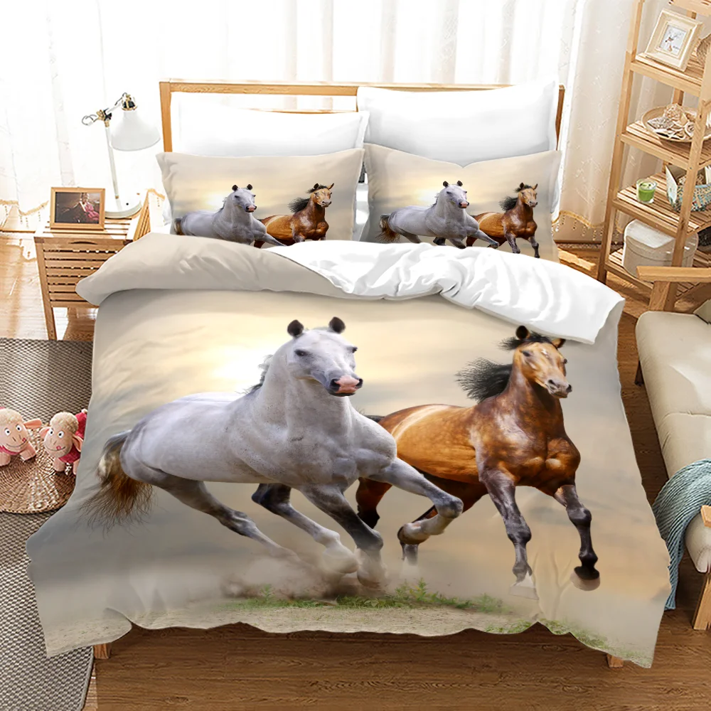 Комплект постельного белья с рисунком лошадей, односпальный, двойной, полноразмерный, Королевский, с рисунком животных, лошадей, Комплект постельного белья, детская, для спальни, 3D 012