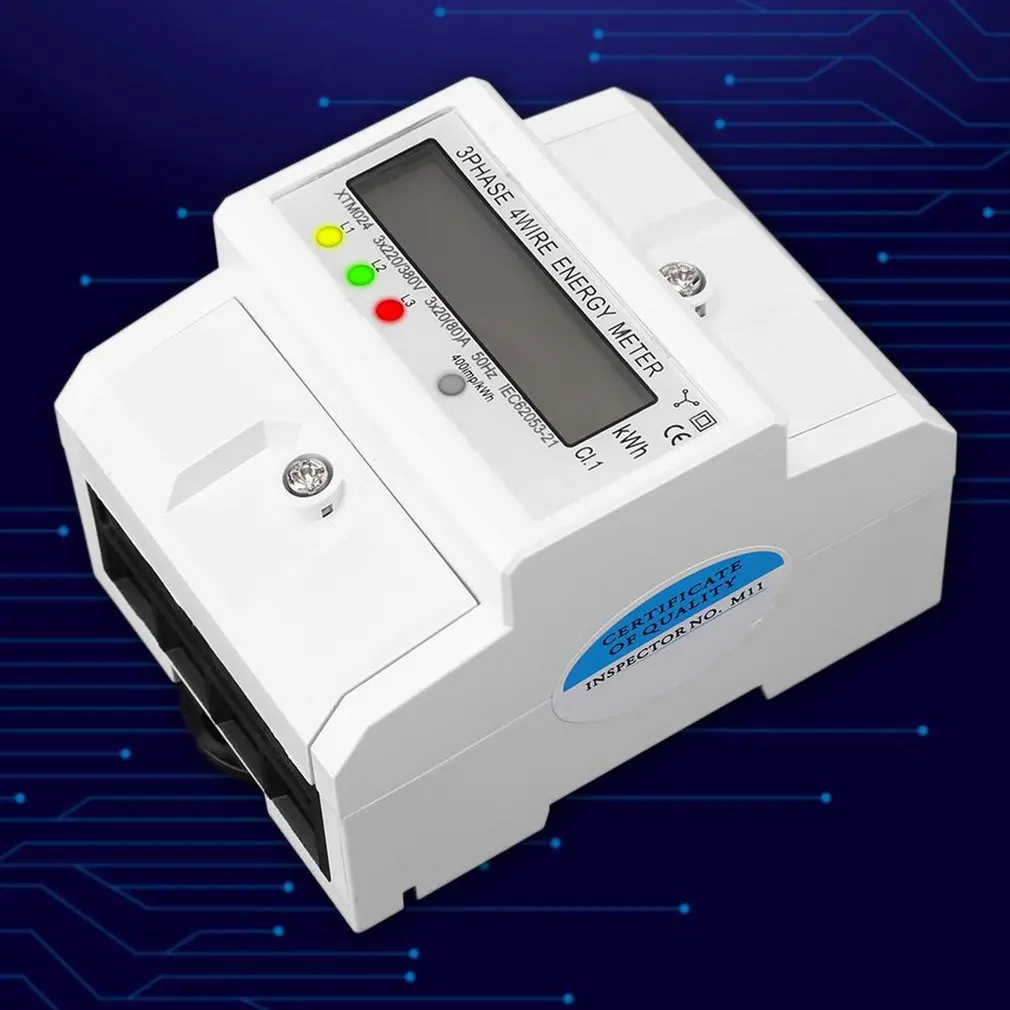 Электронный счетчик энергии 3x20 (80A) трехфазный четырехпроводный din-рейка кВт-ч Электрический метр 50 гц жк-дисплей с подсветкой