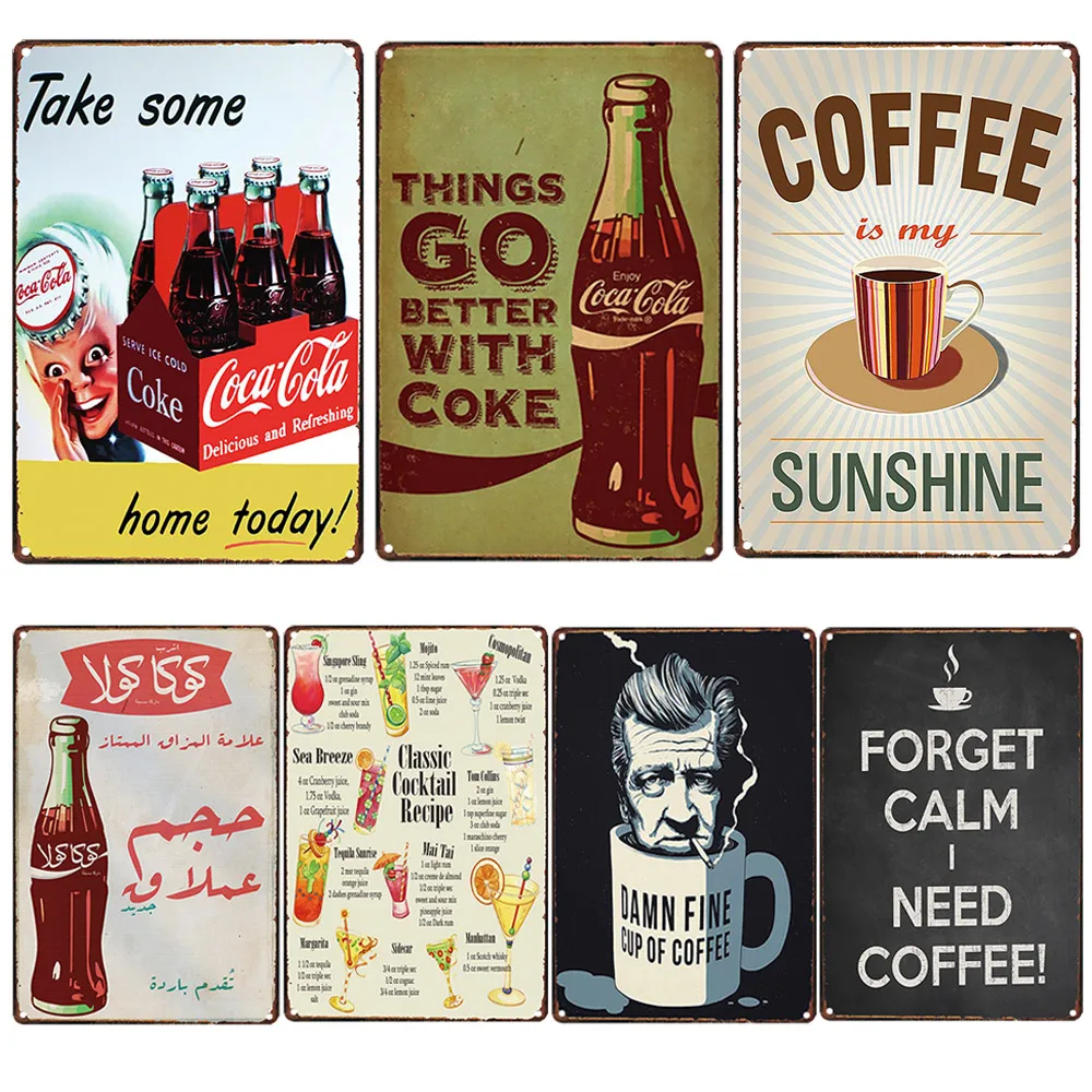 Оловянная кофейная вывеска, деревенский Винтажный стиль вывески для кафе, бистро, Закусочная Kithchen, декор для ресторана, металлические вывески, отличные подарки