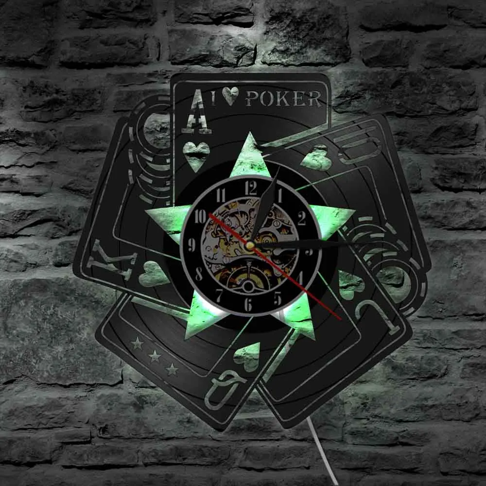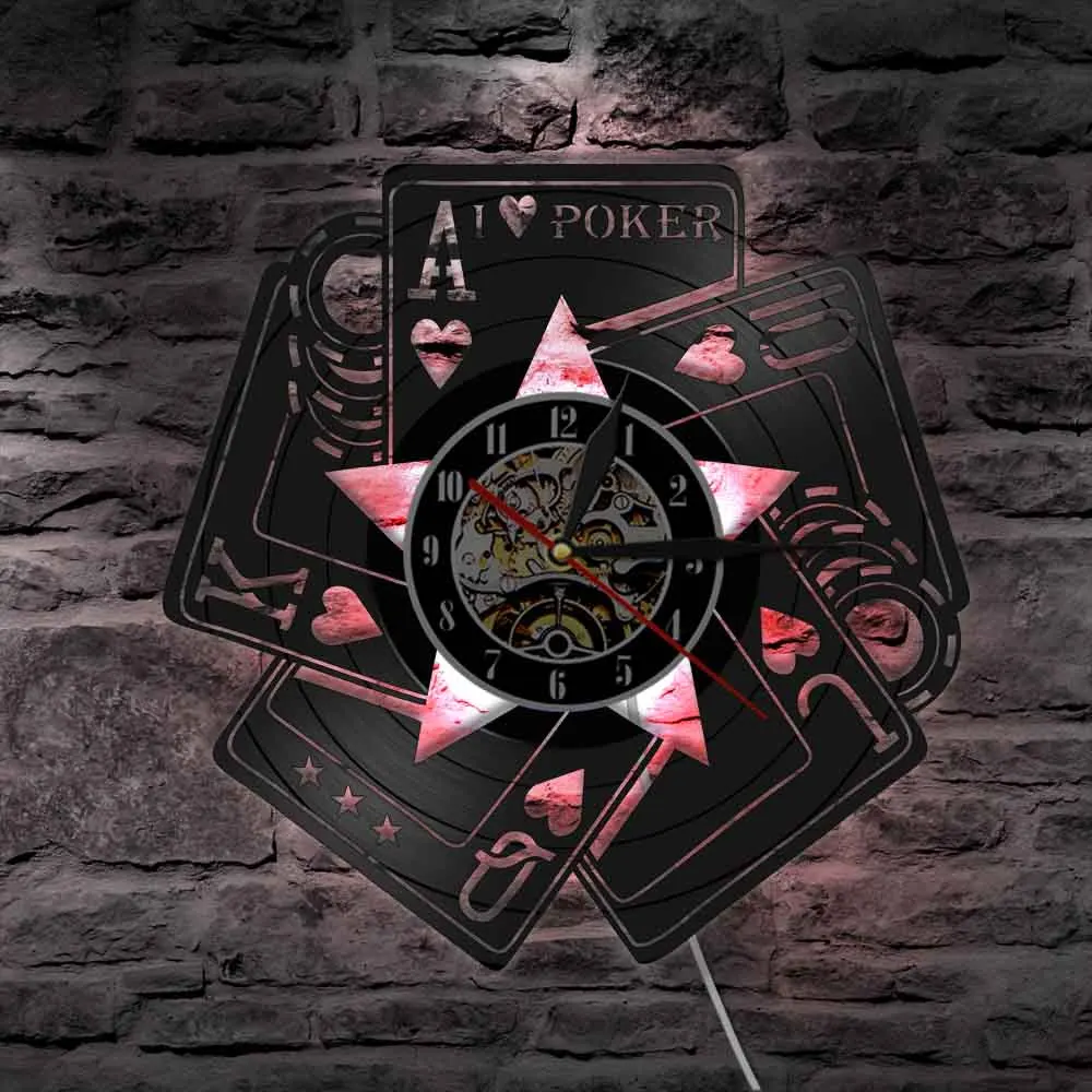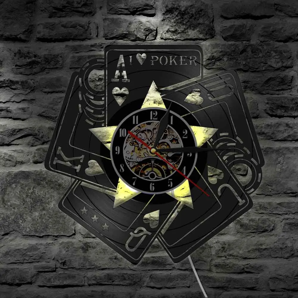 Настенные часы для игры, покера, я люблю покер, казино, фишки, ставки, Виниловая пластинка, настенные украшения для спальни, шахматной комнаты