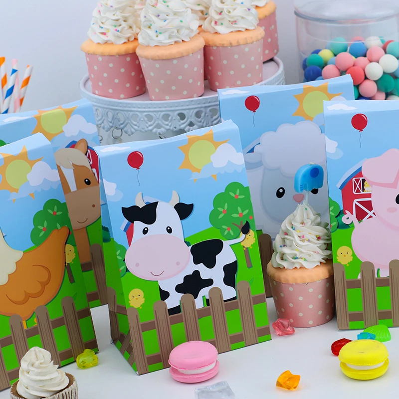 Подарочные пакеты для вечеринки в честь Дня Рождения с животными на ферме, коробки для сладостей, бумажный пакет, коробка для подарков, Овечья лошадь свинья корова, украшения для мероприятий