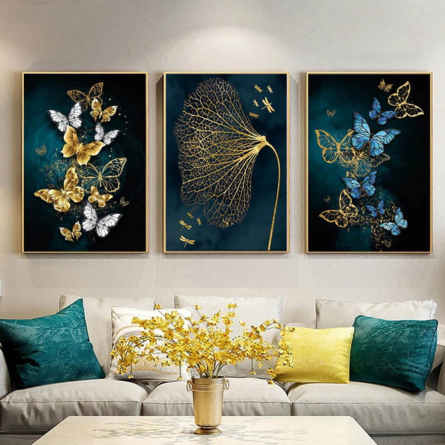Алмазная живопись Голубой Золотой бабочка 5D, Современный домашний декор, абстрактная настенная живопись, картина в скандинавском стиле, украшение для гостиной, 3 шт.