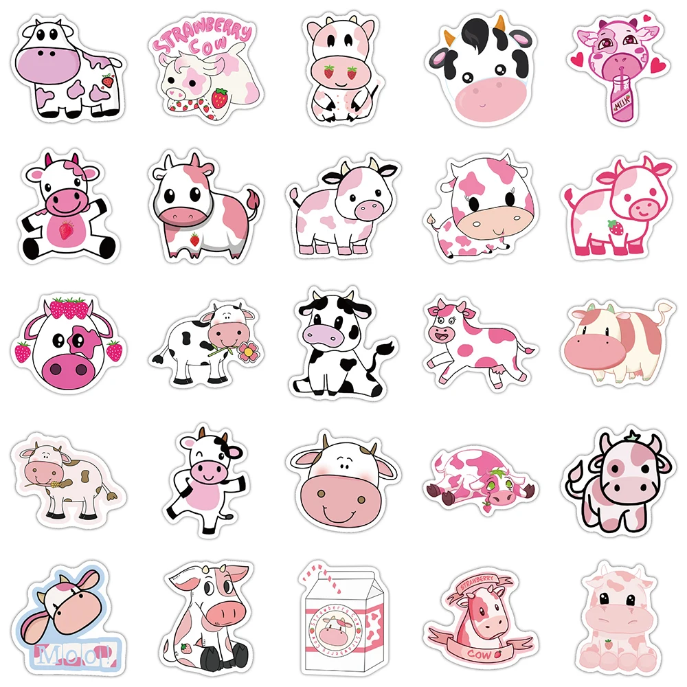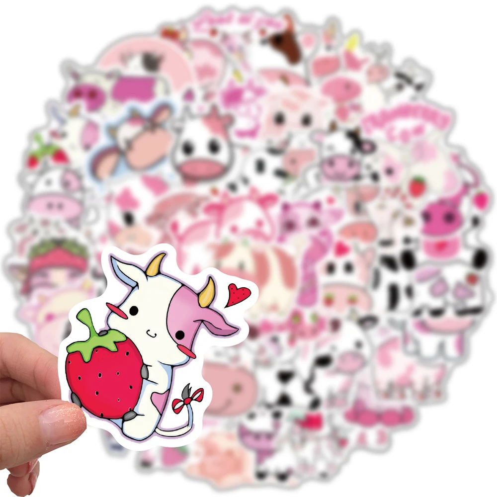 50 шт. милые Мультяшные наклейки VSCO с розовой клубникой и коровой...