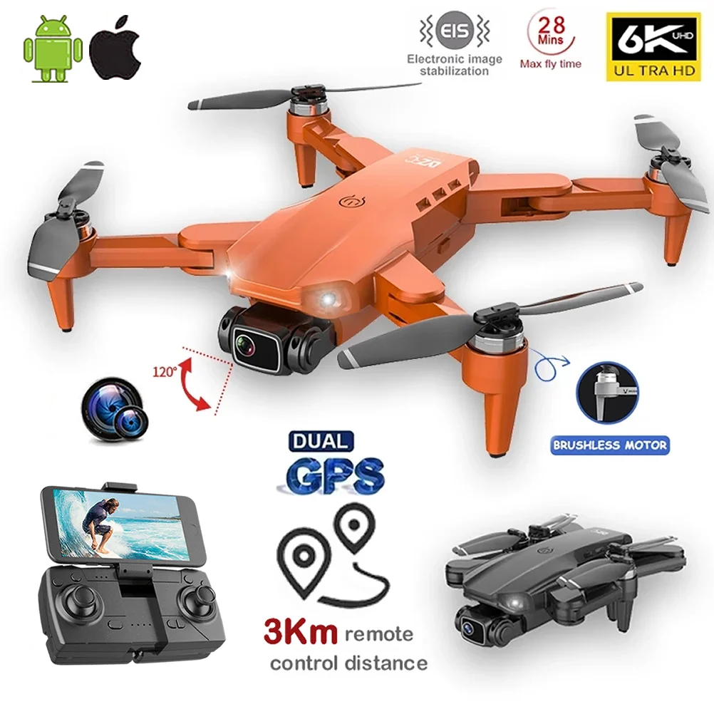 GPS Дрон 6K Двойной HD профессиональная WiFi камера FPV Бесщеточный бесщеточный двигатель четырехосный пульт дистанционного управления расстояние 3000 м