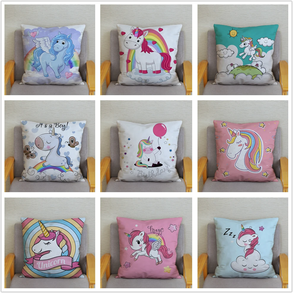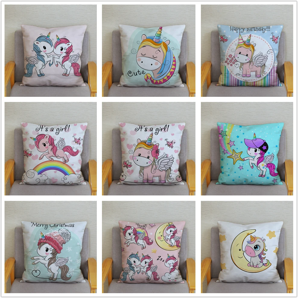 Милая наволочка с милым принтом единорога, наволочка с рисунком из мультфильма, детский подарок, мягкие подушки из полиэстера 45*45, чехлы, диванные кресла, домашний декор