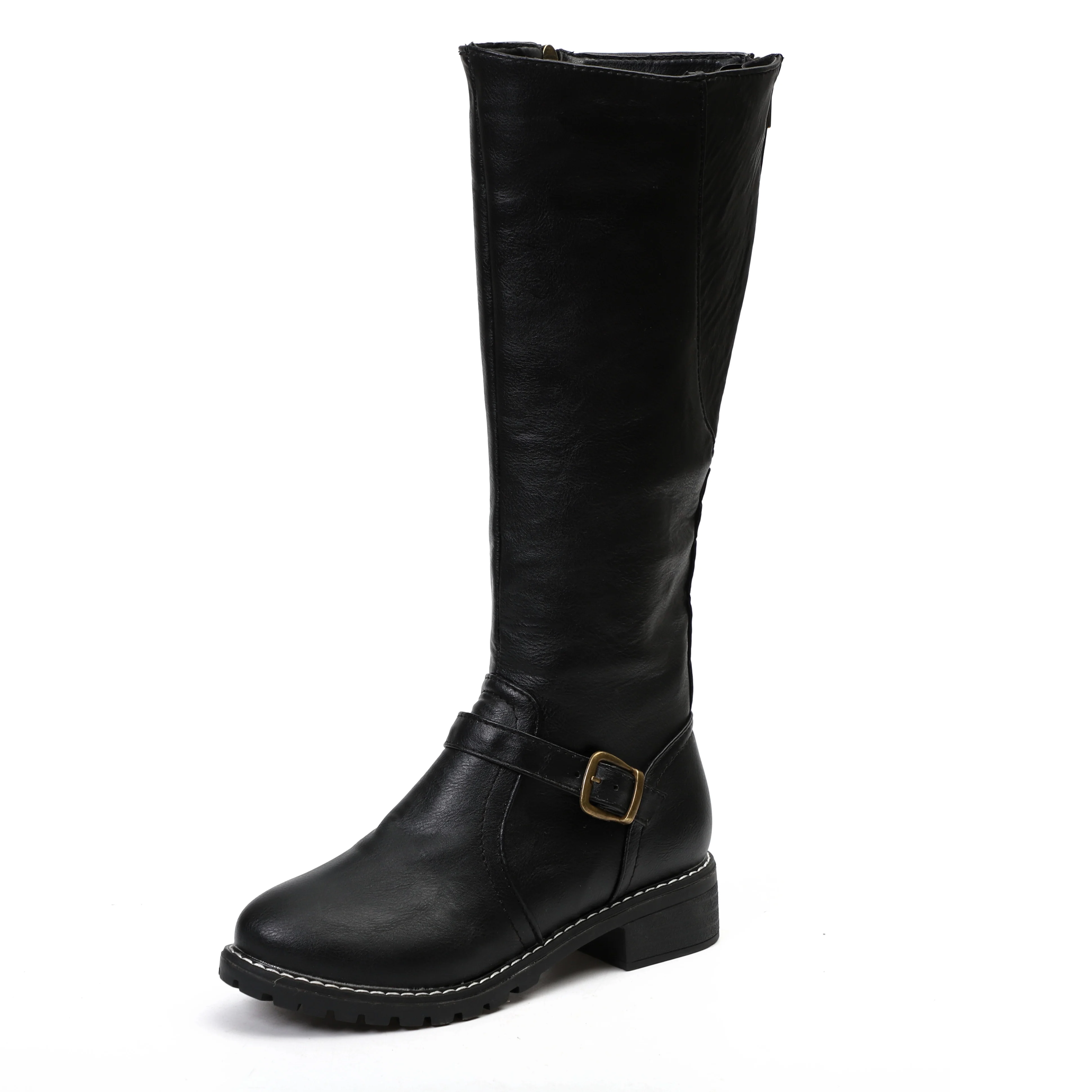Женские сапоги до бедра, коричневые винтажные кожаные сапоги до колена на квадратном каблуке, на молнии, с пряжкой, сохраняющие тепло, с круглым носком, в британском стиле