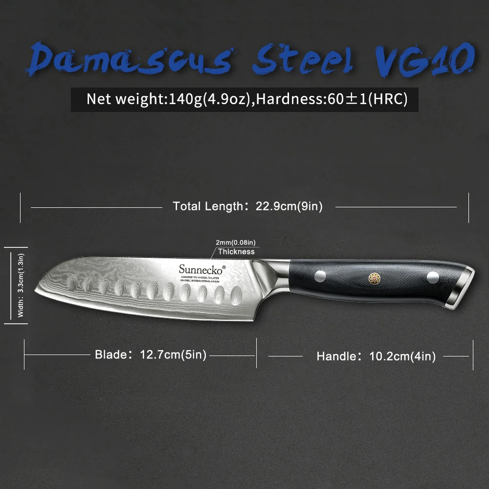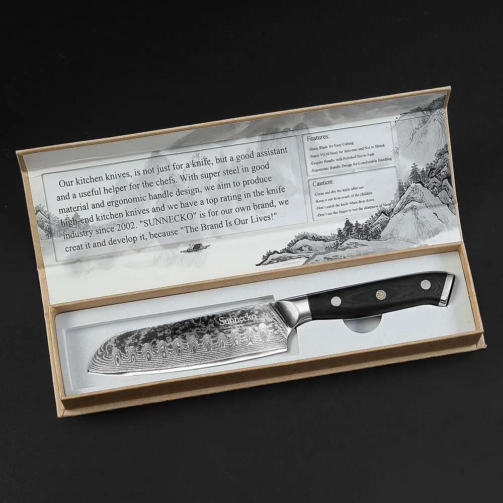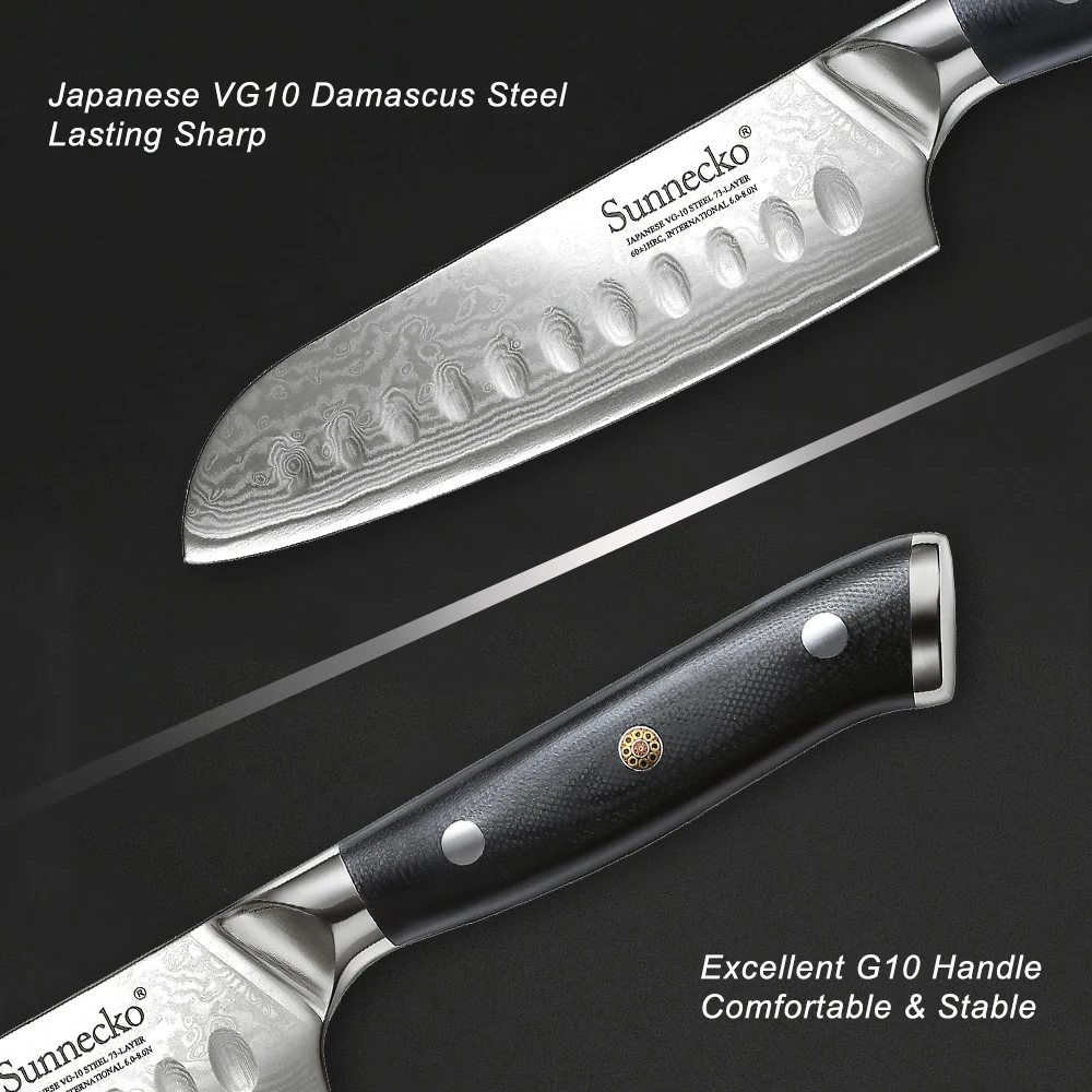 Нож шеф-повара сантоку Sunnecko 57 дюймов, японские лезвия из дамасской стали VG10, острые лезвия, инструменты для резки мяса, рукоятка G10