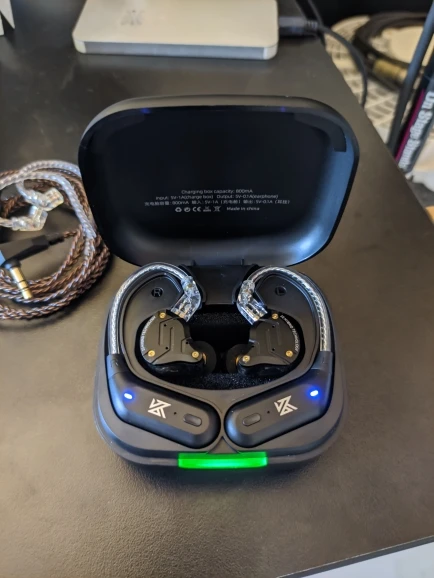 Used this with KZ ZSN in-ears. Pros: Well built, good sound for BT, connects the earbuds to the phone the moment you open the case and disconnects when you close the case with the buds charging in it. Being able to change the earbuds is great. Was able to walk into the next room 5+m away and still got reception. (Semi)-cons: the volume control increases and decreases in steps. Although the steps are smaller than in some other wireless i have tried and the sound goes fairly low at the lowest setting, so it won’t just blast your ears off, which i have experienced with another BT cord, where the lowest was still too loud. One last little nit-pick: the tranparent cable piece is not detachable from the black battery/transmitter part afaik. Would be nice if you can replace just the transparent cable or the battery/transmitter part. Overall great product!