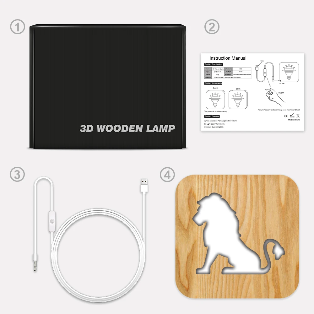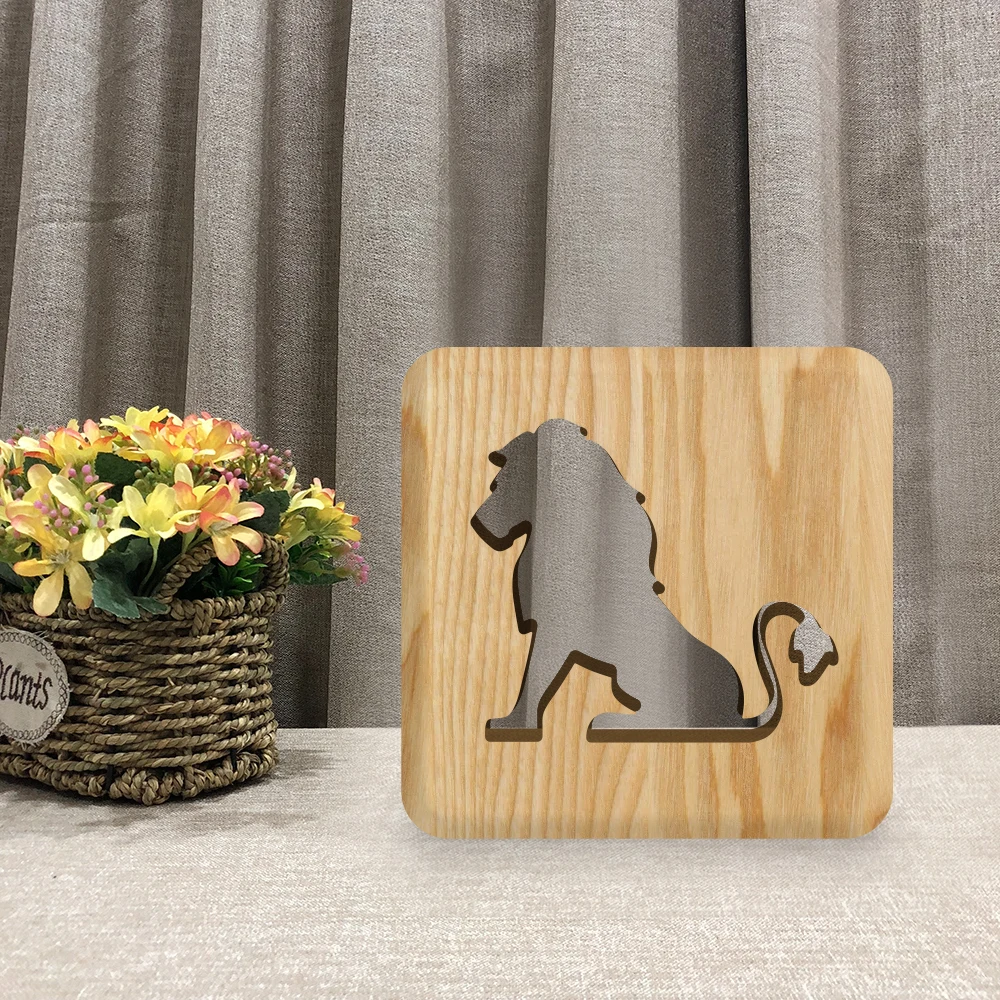 Деревянная 3d-лампа в виде льва для мужчин, светодиодный ночник с USB, спасветильник светильник для спальни, декоративная настольная лампа для детей, подарок на день рождения