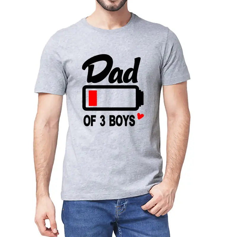 Смешная семейная футболка для папы 3 мальчиков с низким зарядом батареи, подарки на день отца, Мужская футболка из 100% хлопка, новинка, унисекс футболка с юмором