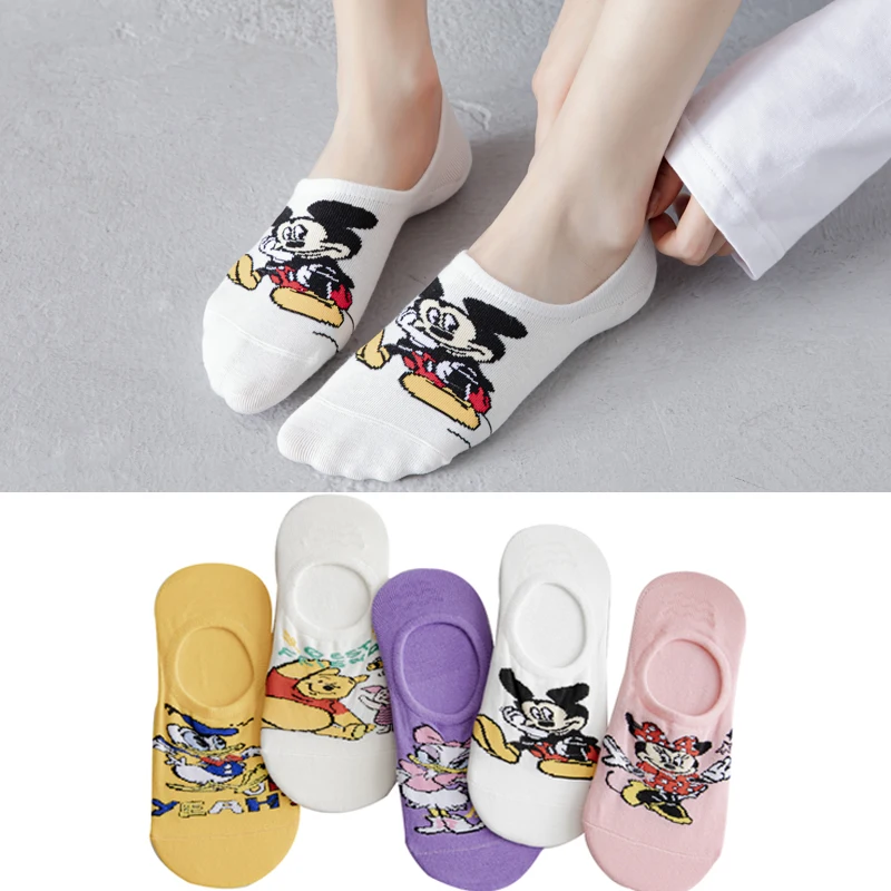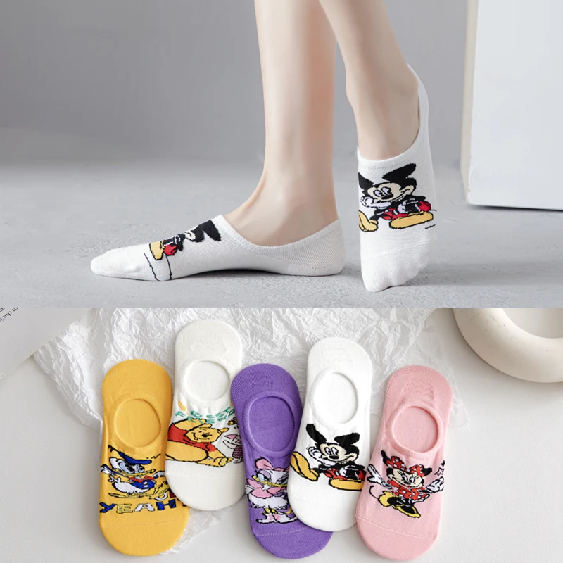 Носки женские в Корейском стиле, хлопковые короткие носки-невидимки с мультяшными животными, медведем, мышью, 5 пар, размер 35-40, носки с белкой