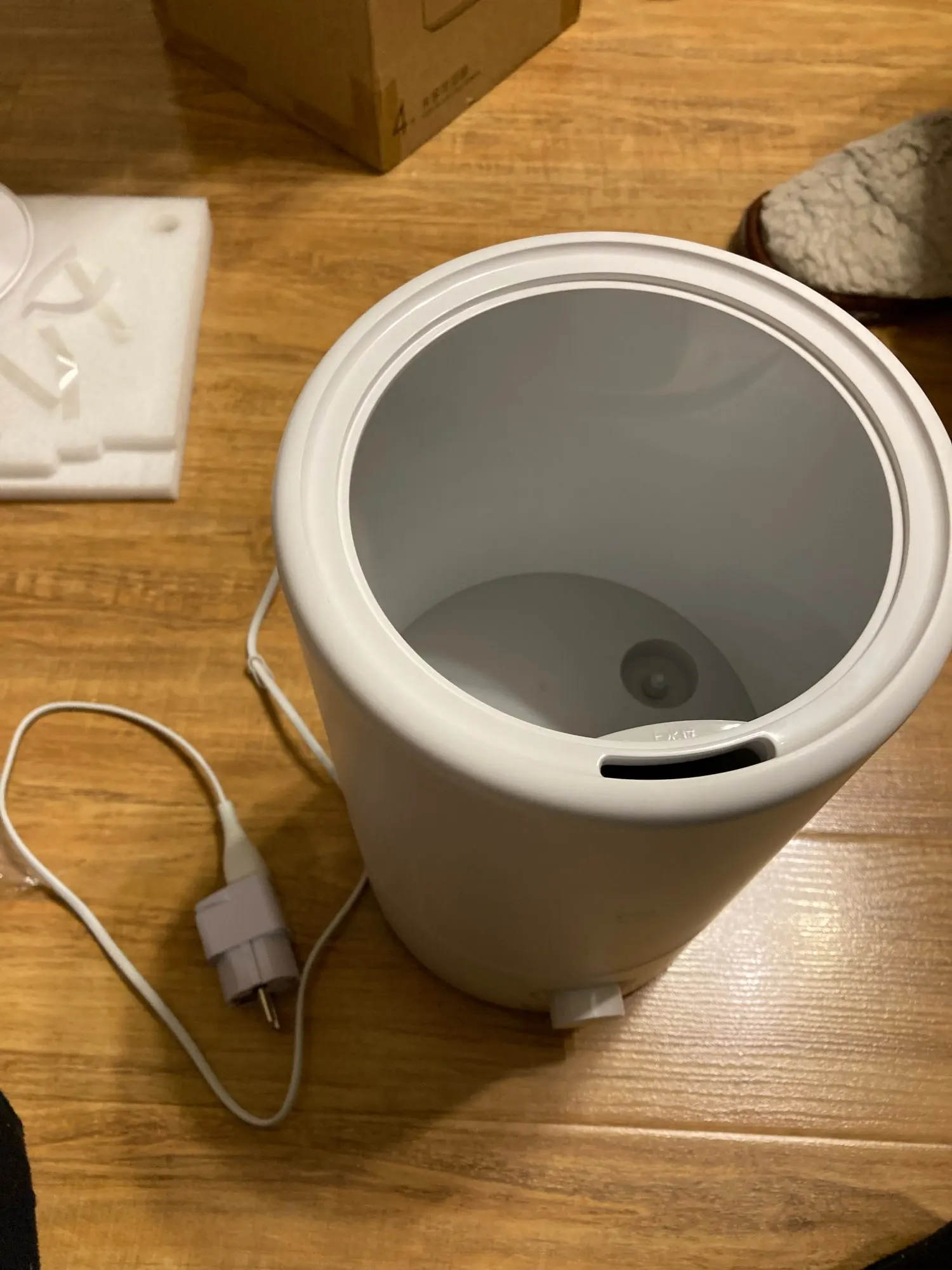 Доставка 7 дней до Сургута, коробка была повреждена, но сам увлажнитель цел. Дополнительно положили переходник для российской розетки. Заказал за 1800 р. Увлажнитель работает неплохо, нельзя добавлять эфир масла.