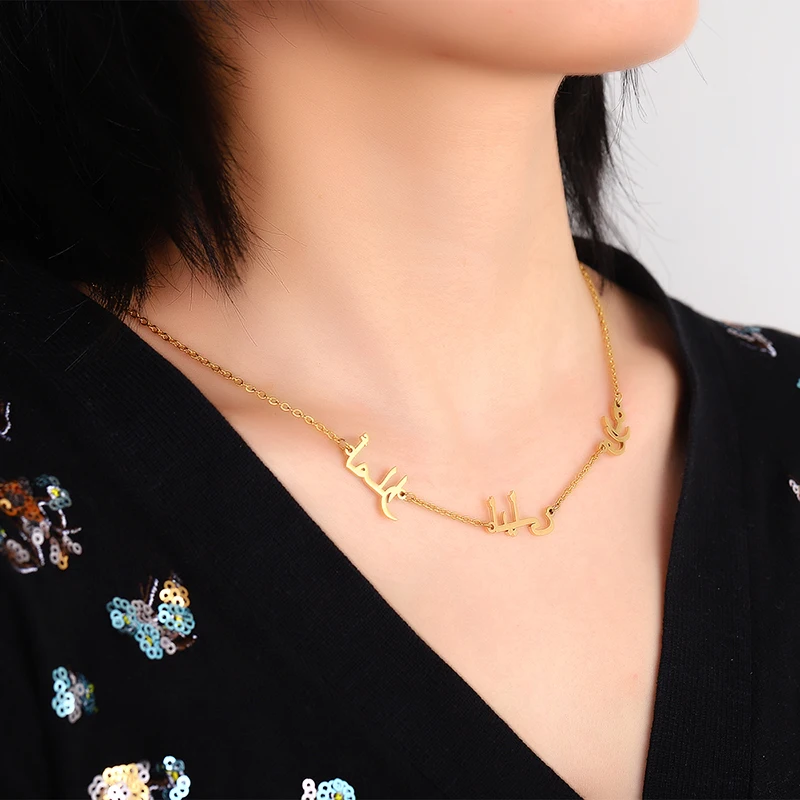 Цепочка-чокер Kcaco с арабским именем из нержавеющей стали ожерелье с буквами с позолоченным покрытием, индивидуальное ювелирное изделие, подарок для женщин