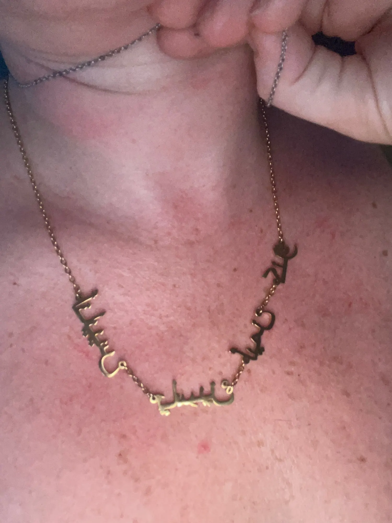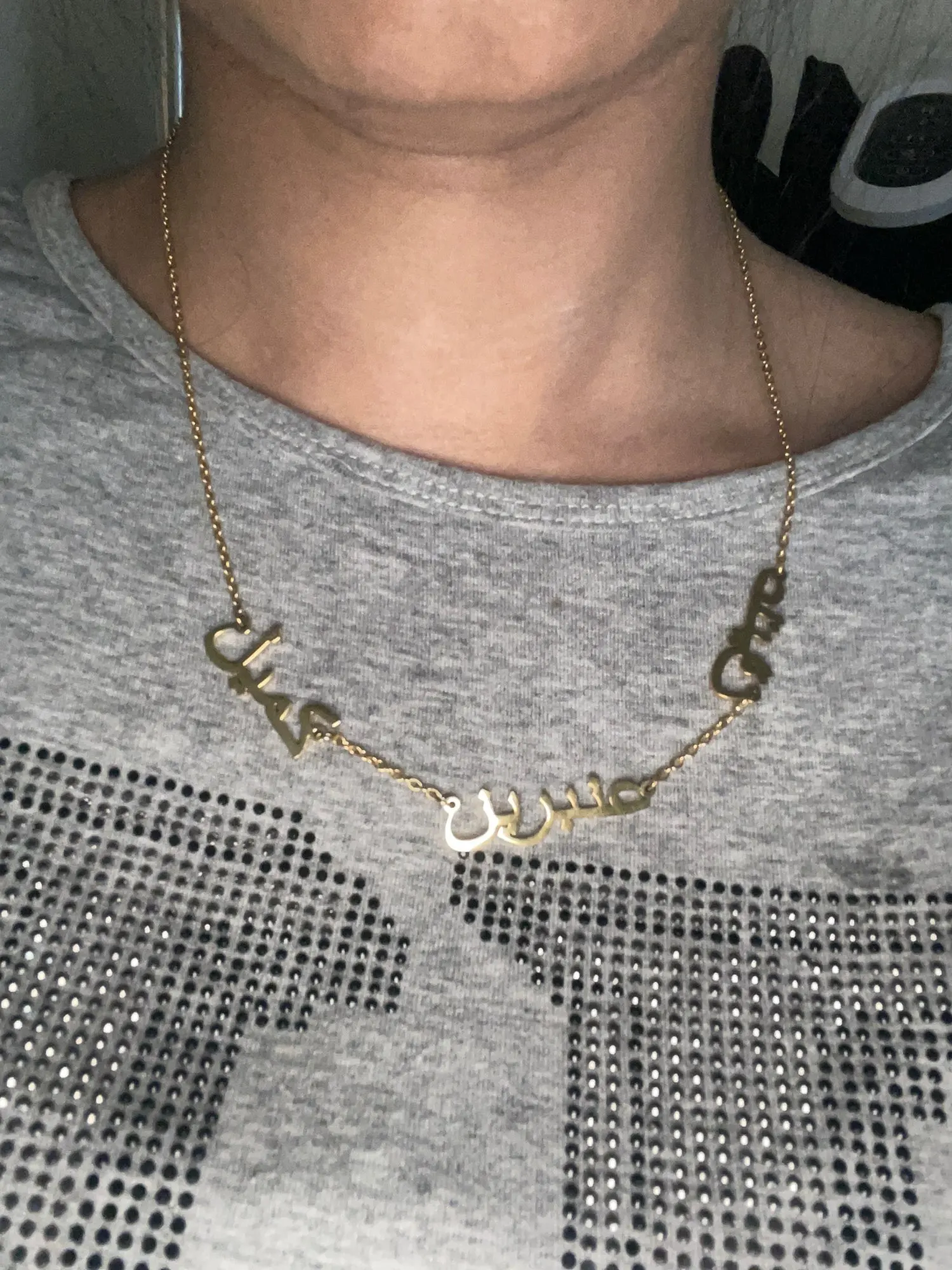 je déteste, déçu du collier je voulais qu'il soit écrit en arabe ce n'est pas le cas.prenom écrit en gros pas beau.Plus jamais je recommenderais chez vous