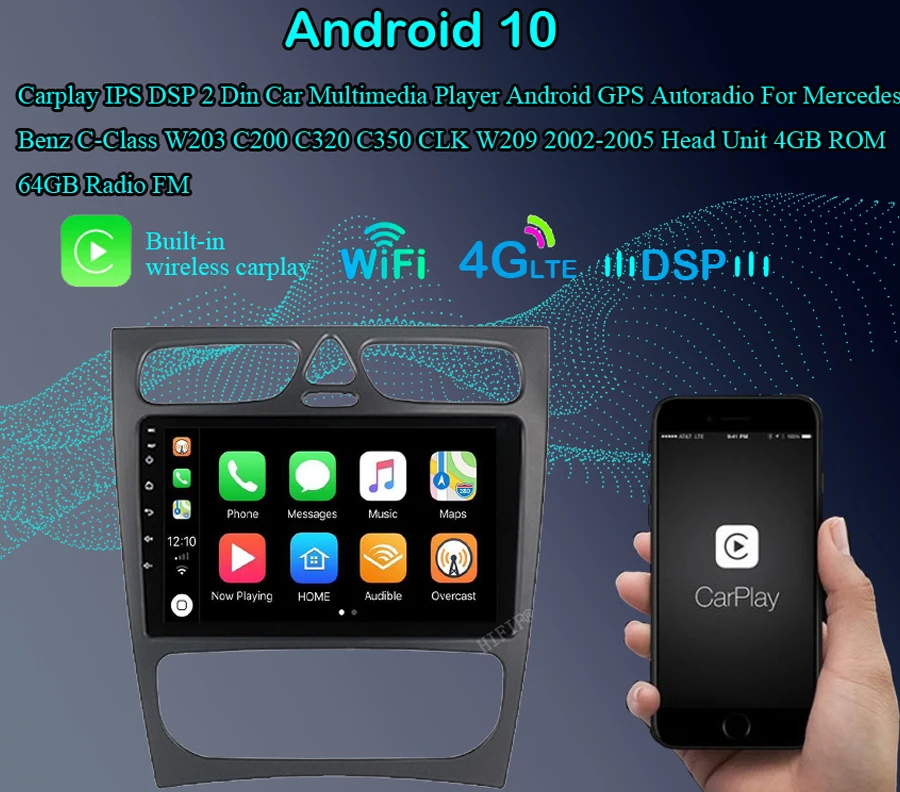 Автомобильный радиоприемник 6G 128G для Mercedes Benz C-Class W203 C200 C320 C350 CLK W209 2002-2005 GPS навигация 4G WIFI 2 Din Android 10 DVD