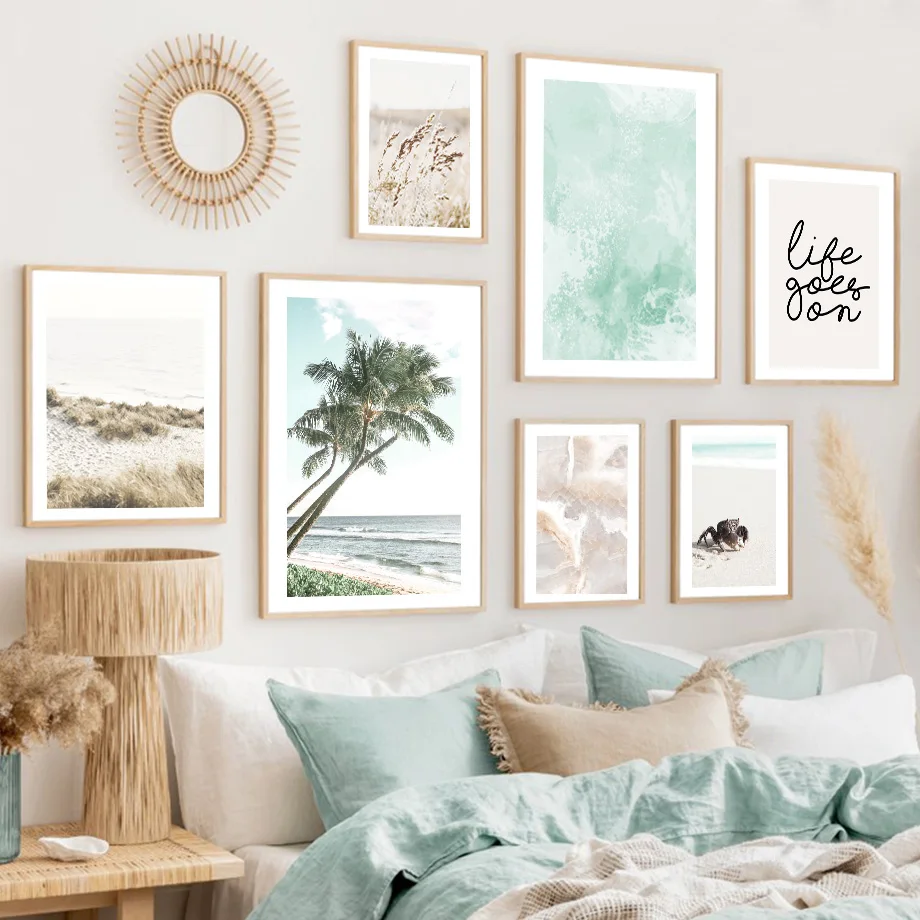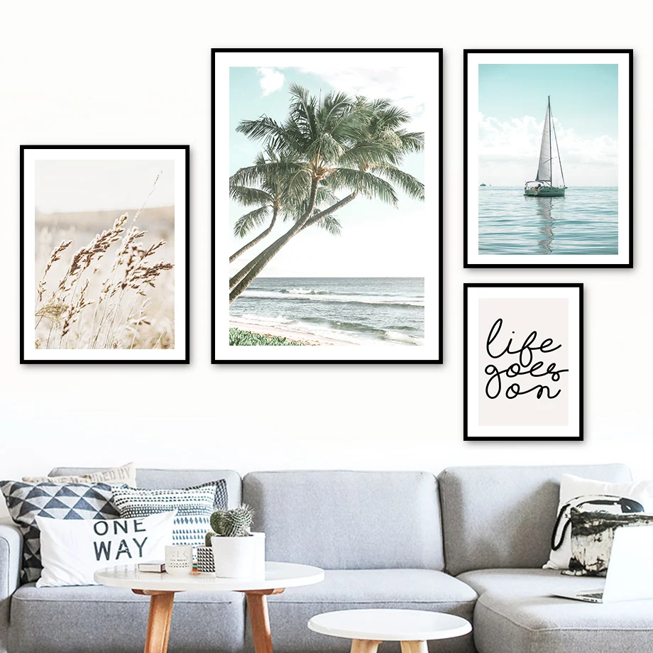 Кокосовое дерево, песок, тростник, морская доска для серфинга на стену, искусство, холст, живопись, скандинавские постеры и принты, настенные картины для декора гостиной