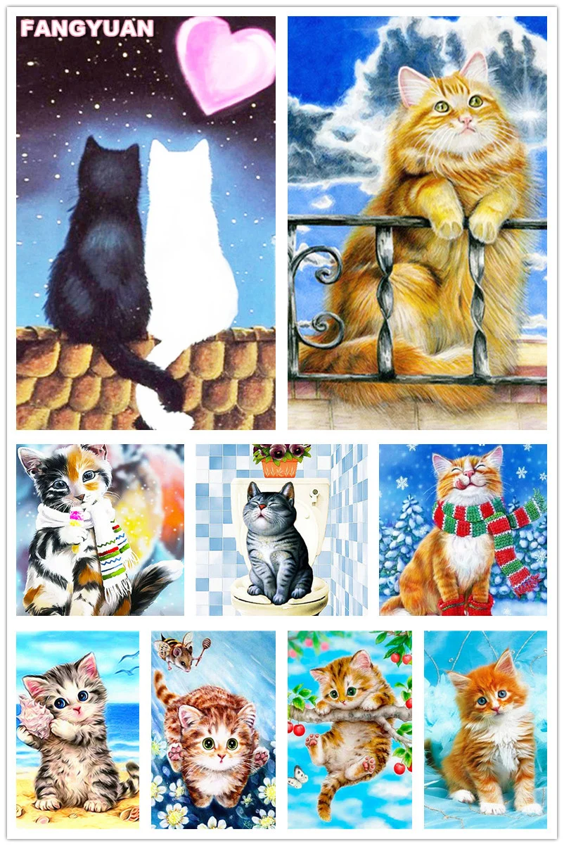 Набор для алмазной вышивки 5D сделай сам, картина с милыми животными, Набор для вышивки крестиком с кошками, мозаика для домашнего декора