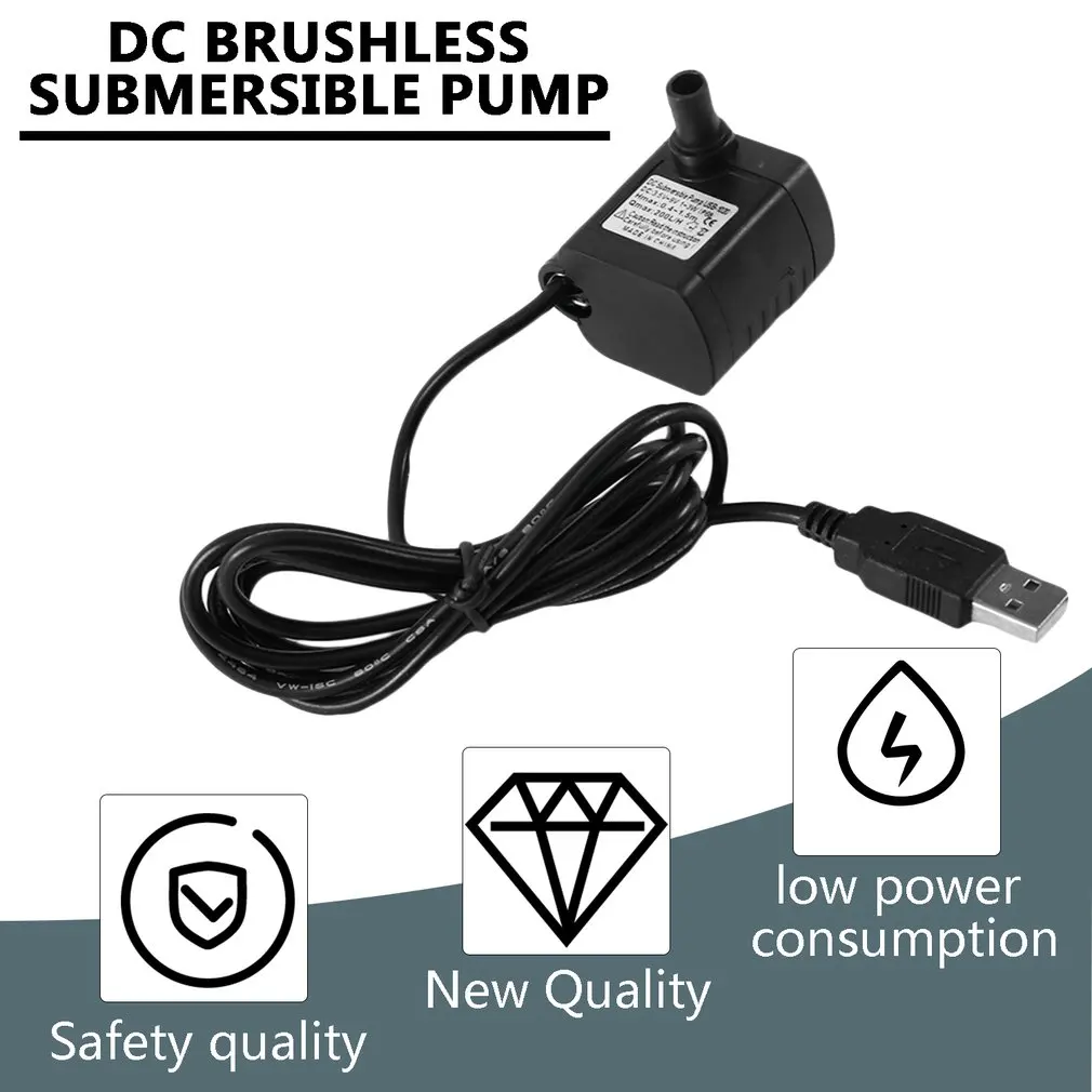 Бесщеточный Водяной насос, погружная помпа для фонтана, USB, для аквариума, ландшафта, фонтана, пруда, инструмент, сверхтихая