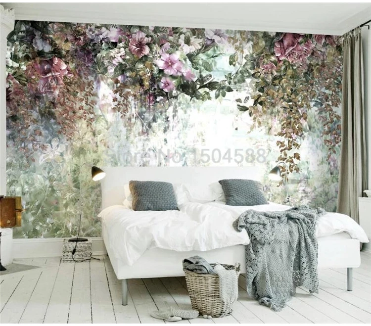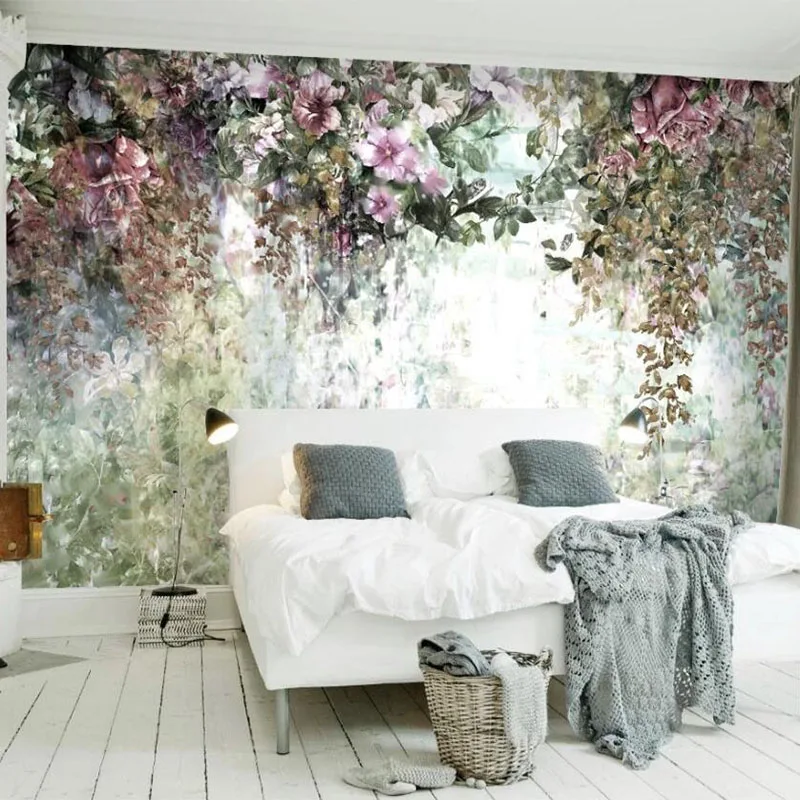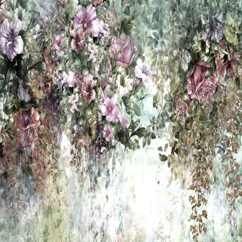Настенные обои на заказ, винтажные, ручная роспись, 3D цветы, растения, европейский стиль, фоновая роспись, гостиная, Papel De Parede