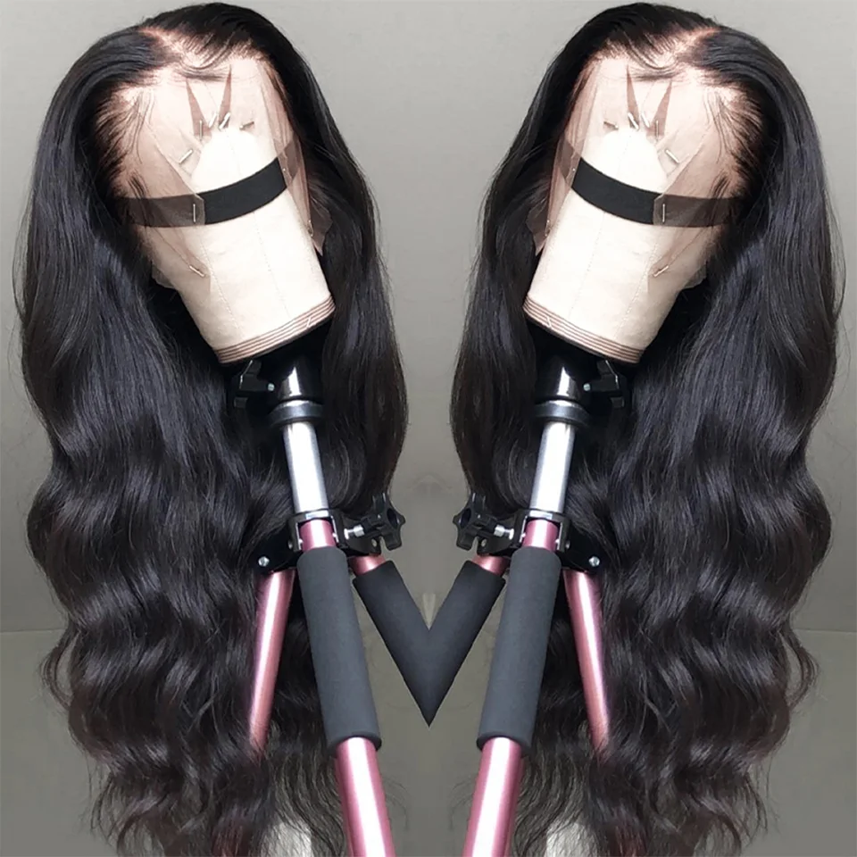 Парики человеческие из черных волос, волнистые, 13x6 см, 180 дюйма