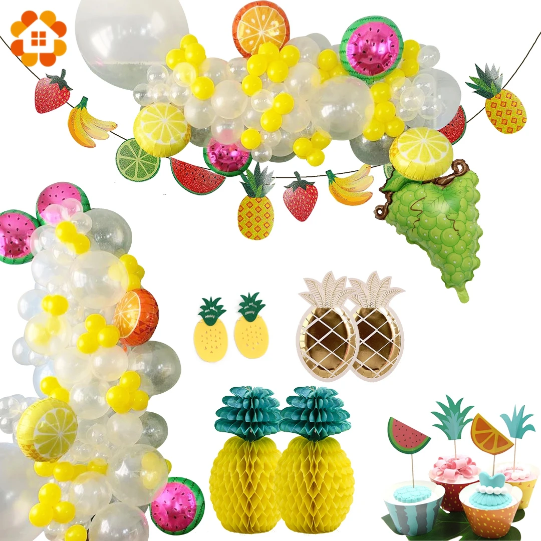 Тропические украшения для вечеринки в гавайском стиле ананаса шар в виде фламинго Aloha баннер посуда в виде ананаса для вечеринки, дня рождения украшения