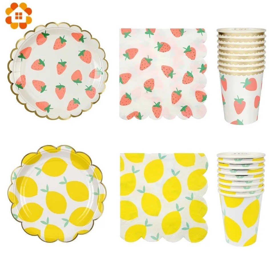 Одноразовая посуда с изображением фруктов, 1 комплект, баннер с ана...