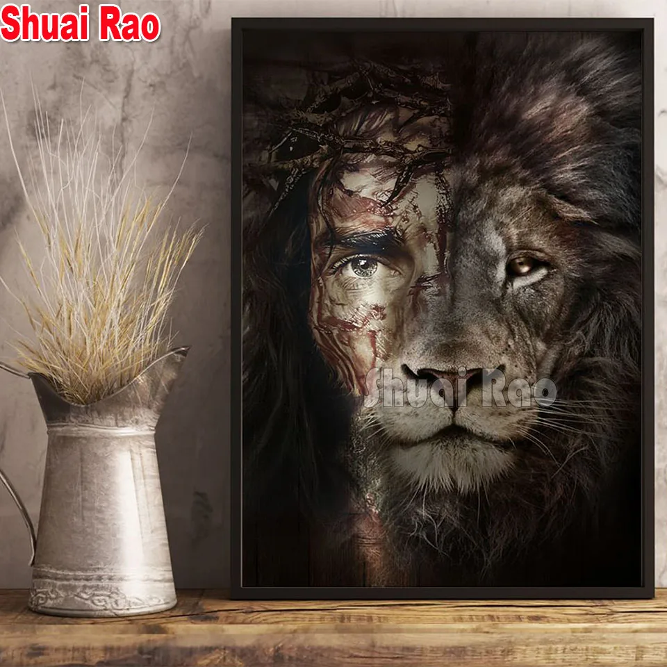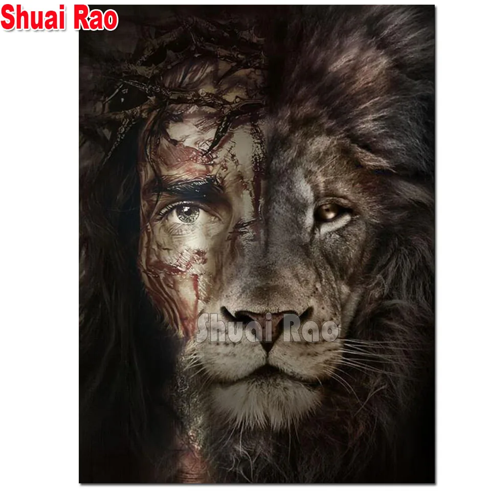 Diy пазл 5d большая Алмазная мозаика "Иисус и Лев" Алмазная Картина Вышивка крестом полная круглая дрель животное и человек
