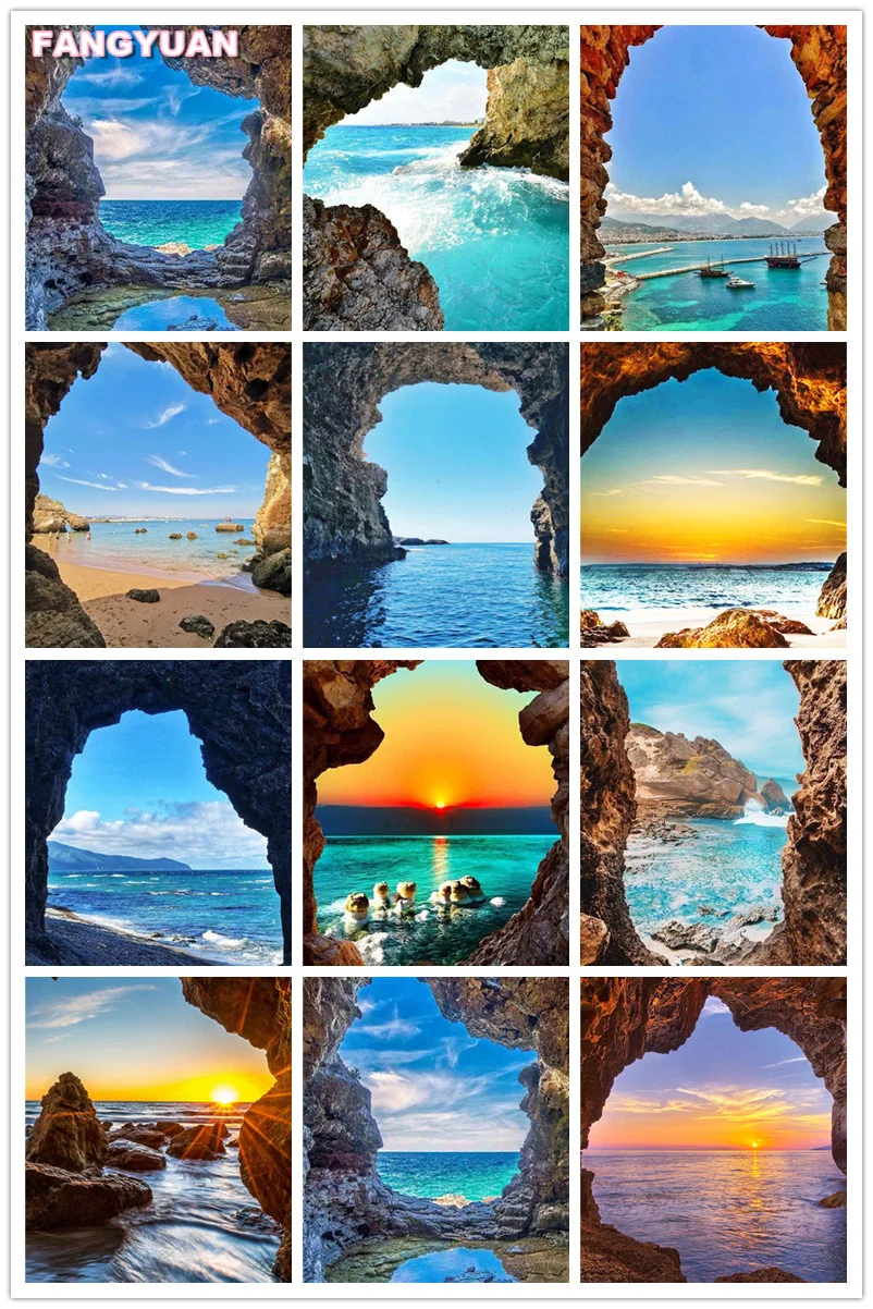 Пейзаж Пляж город 5D Diy алмазная живопись искусство аксессуары пол...