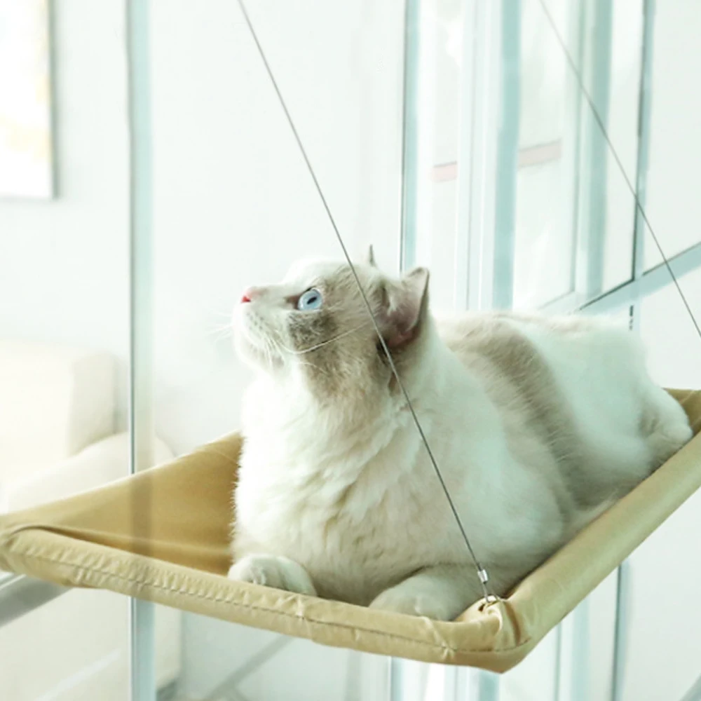 Материал-Дышащая ткань Оксфорд + пластик, температура тела кошки не перегревается из-за оконный гамак воздухопроницаемости кошки. Зимой добавьте матрас на эту кошачью окуня, эта кошачья кровать будет самой удобной.