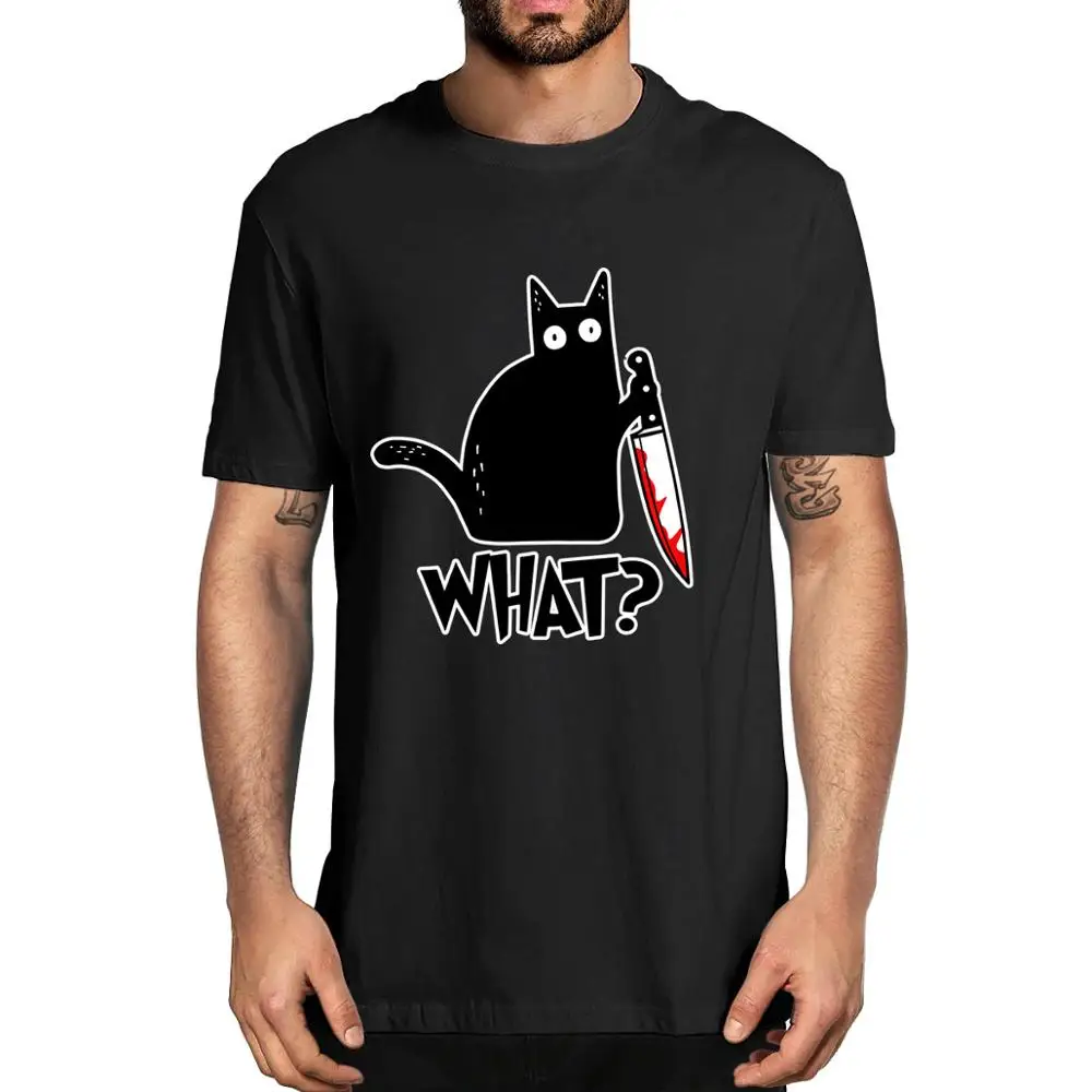 Кошек что футболка убийственная кошка с нож забавный подарок на Хеллоуин унисекс высокое качество мужские 100% новинка, комплект одежды из хлопка футболка женская футболка