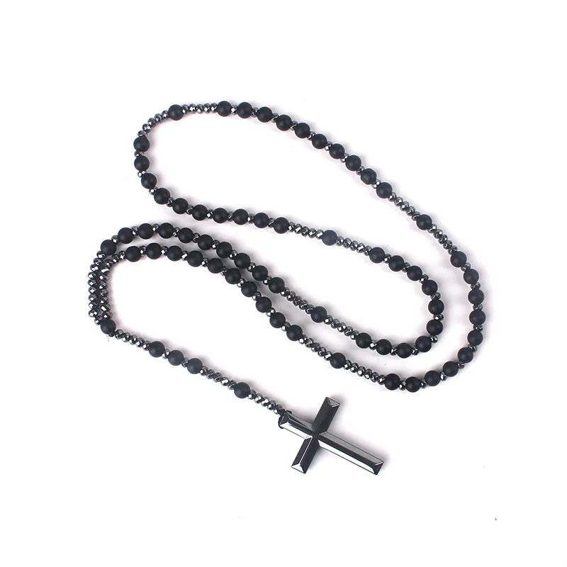 Ожерелье из бусин с гематитовым покрытием, матовый черный камень, украшение в виде креста, ожерелье для мужчин и женщин, ювелирные изделия