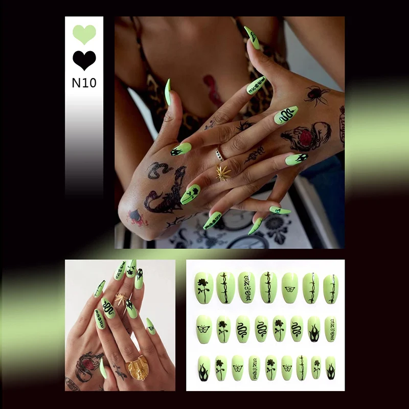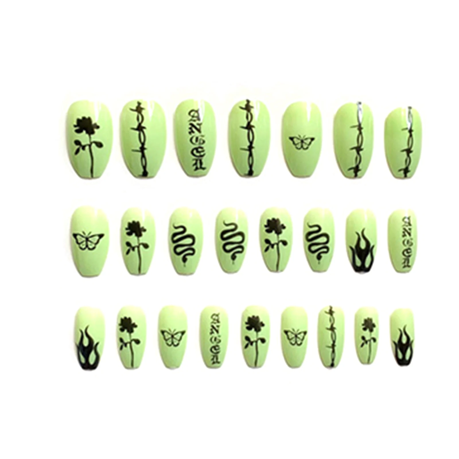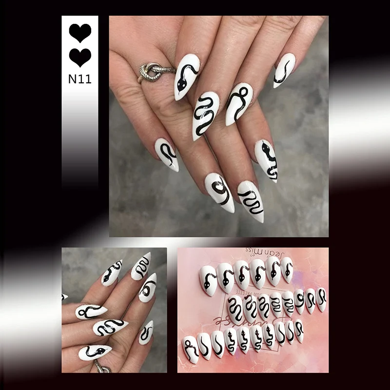 24 шт. средней длины накладные ногти-стилеты ногтей в стиле панк Змеиный узор черные белые матовые накладные ногти искусственные полные Типсы для маникюра Инструменты