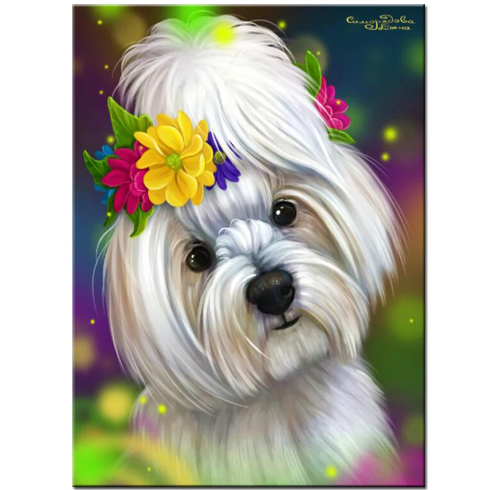 Алмазная вышивка в виде пуделя 5 d, картина сделай сам, полноразмерная, квадратная, круглая, мозаика из страз, милая собака, животное, ручной работы, подарок aся