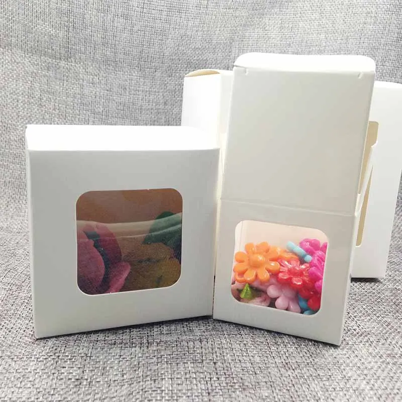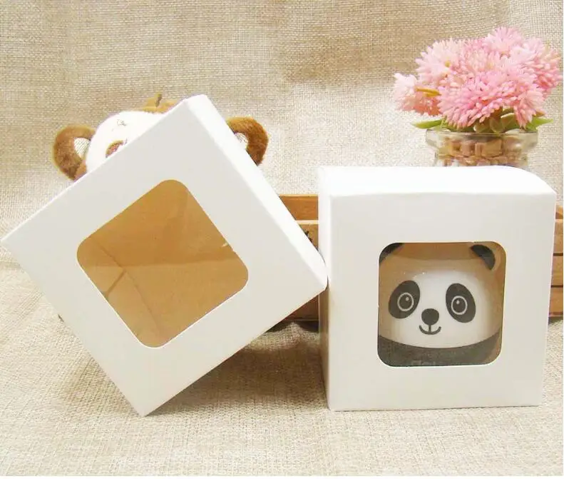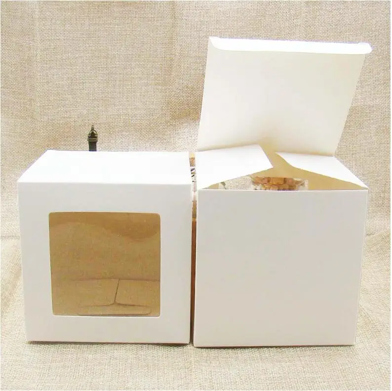 Квадратная картонная коробка с прозрачным окном из ПВХ, 5 шт.лот, белаячернаяКрафтовая бумага, Подарочная коробка, коробка для свадебных подарков