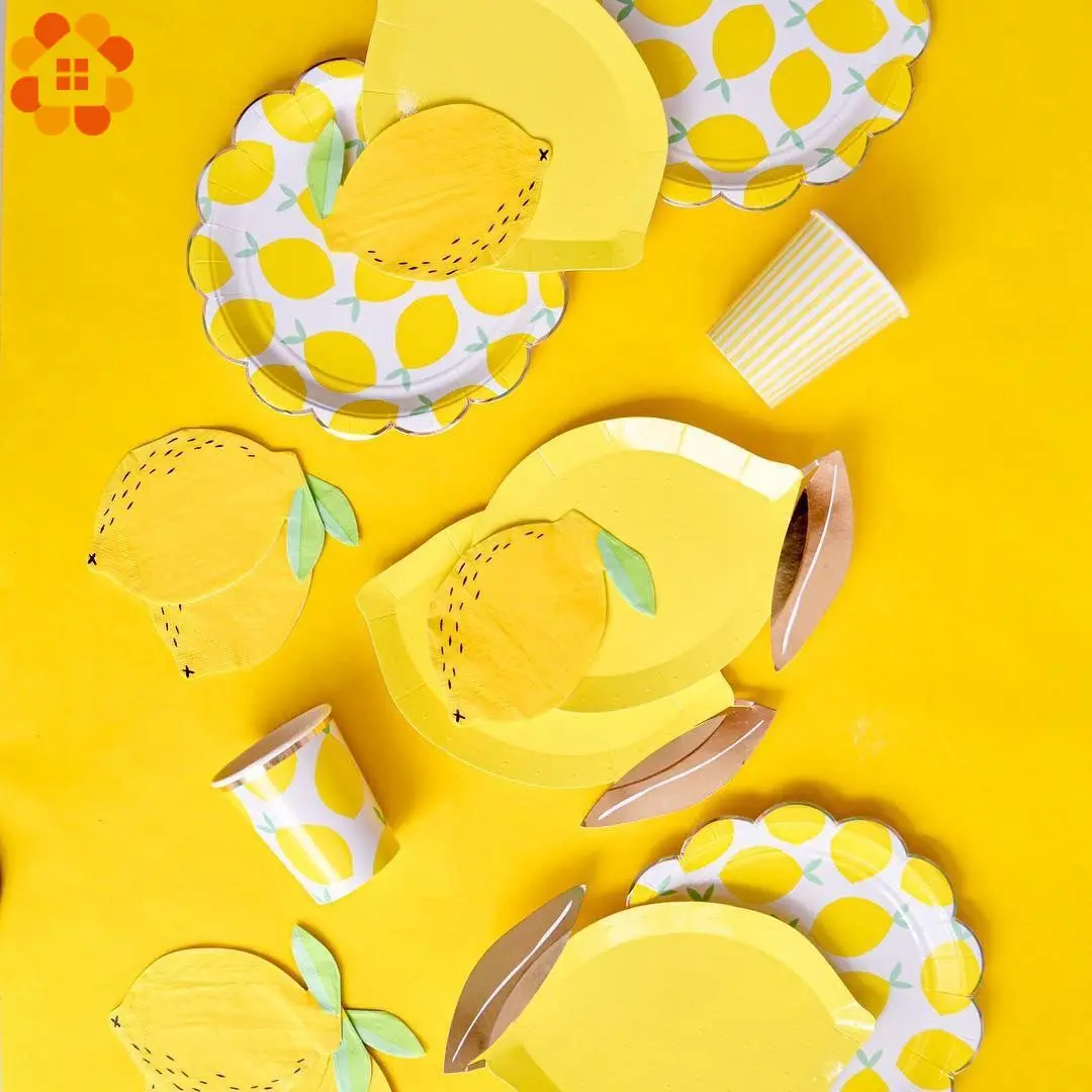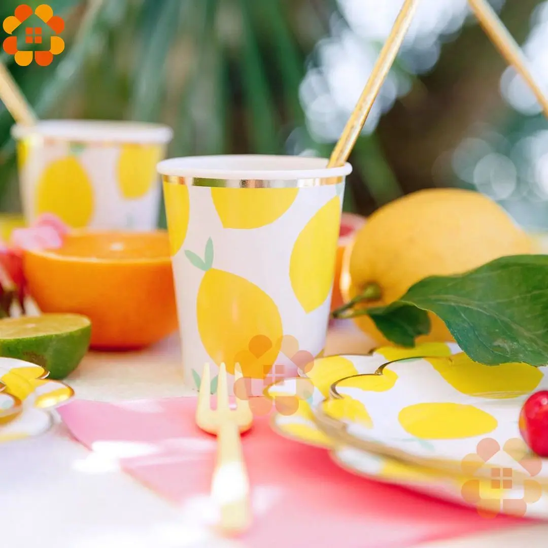 Декоративная посуда на тему лимона, гавайская летняя Праздничная посуда, соломинка, чашки, воздушные шары, украшение для дня рождения