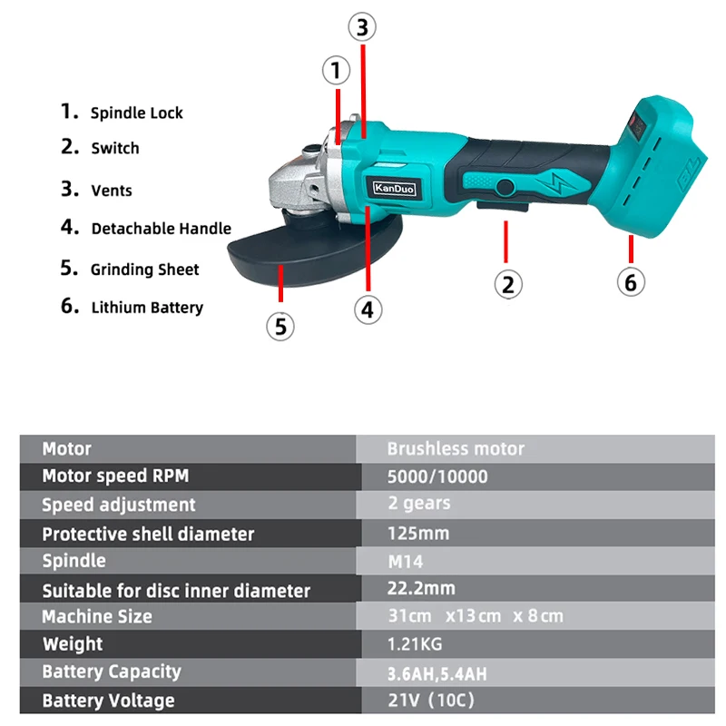 Циркулярная Пила KANDUO 21 в, угловая цепная пила 3 в 1, бесщеточный двигатель беспроводной электрической цепной пилы для беспроводной угловой шлифовальной машины
